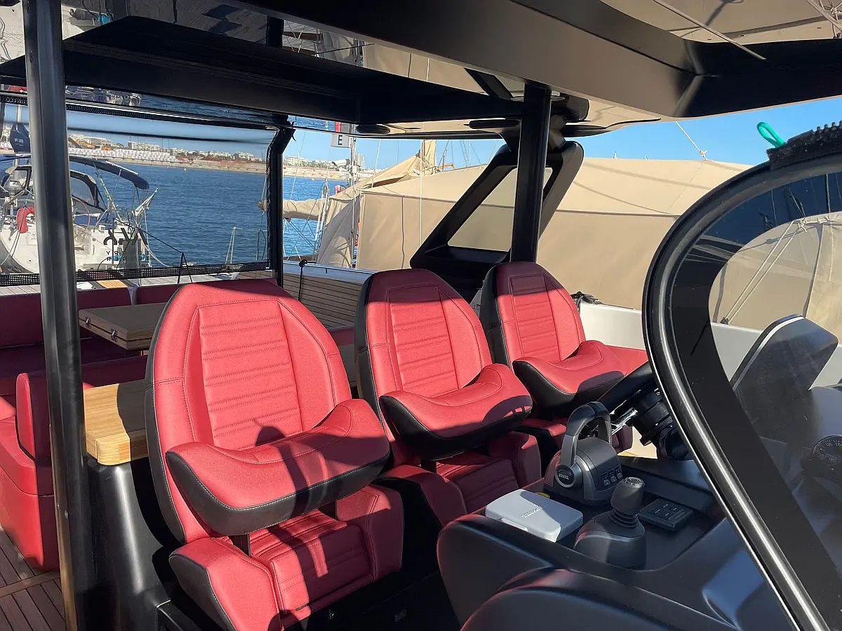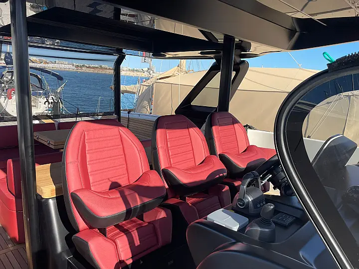Cabin linen and towels, Teak deck, Hydraulic side platform, VHF, Refrigerator, Radio, Ice maker, Air condition