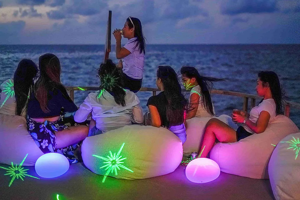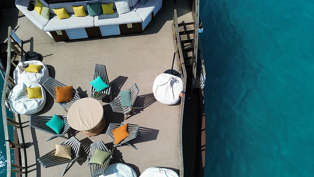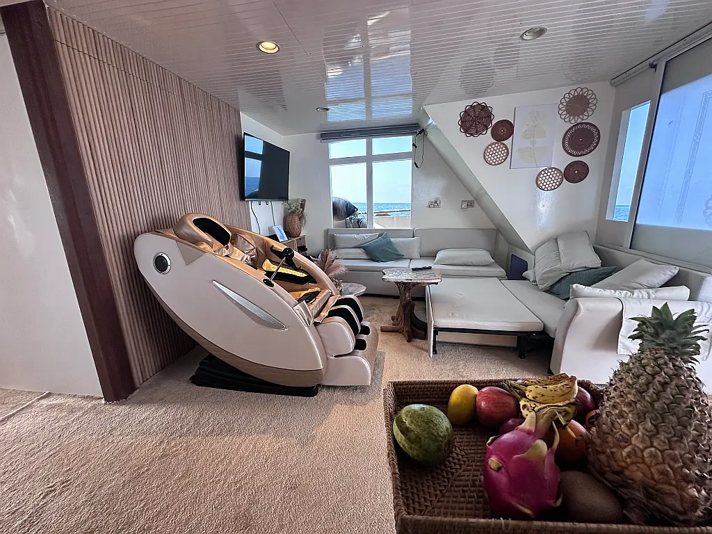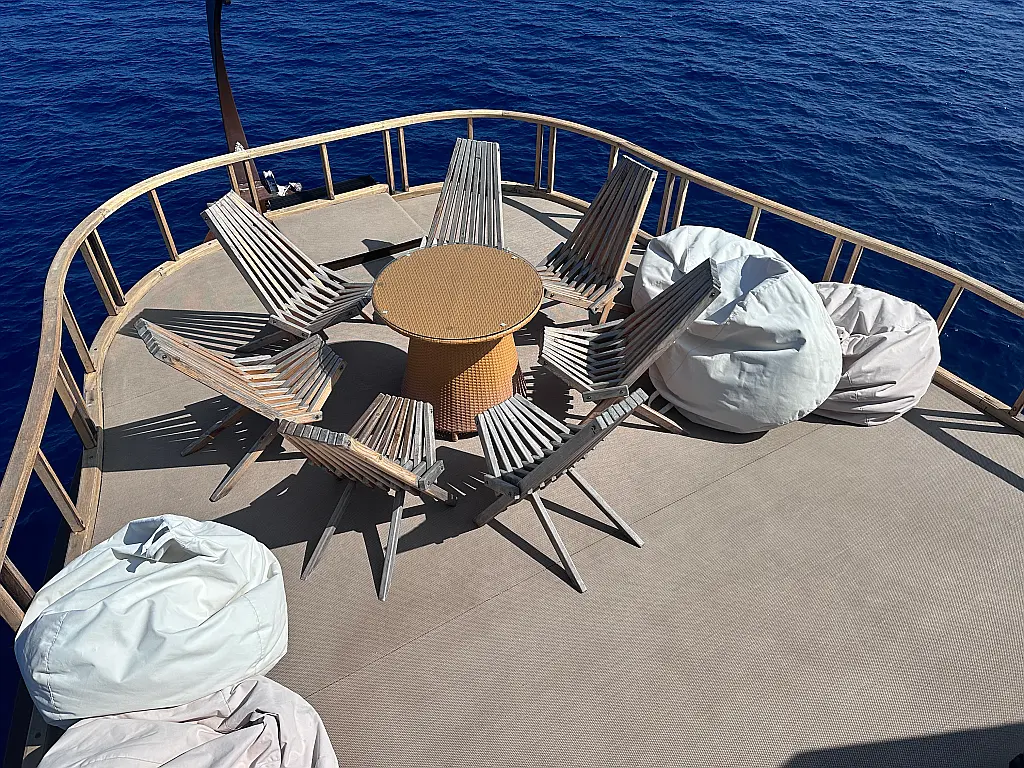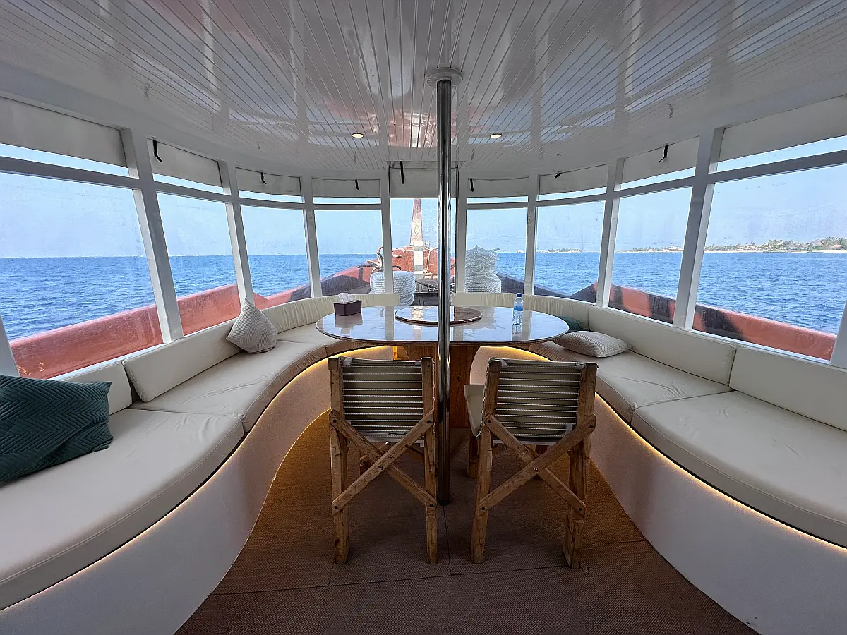 Wi-Fi, Snorkeling equipment, TV, Solar panels, Jacuzzi, Fishing equipment, Outboard engine, Playstation 4, SUP, Kayak, Dinghy, TV at Lounge area and rooms, Outdoor Sound system, JBL sound for karaoke, Alexa smart control curtains,Lights,announcement, Microwave, Outdoor Grill, Grill oven, Air Condition in All rooms, Juice mixer, 4 burner stove, Freezer, Cold Chiller, Local fishing equipment, Automated massaging chair, Spa Jacuzzi (outdoor), DJ and lights equipment, Karaoke system, GPS system, VHF system, Wifi Booster, Wifi splitter, Smart Lights, Smart Switch, Printer, Italian brew coffee machine, Capsule coffee machine, Fire Safety extinguisher total 9 bottles, Automatic fire extinguisher 6, Searchlight, Life jackets 20 ( with children size), Auto pumps 2, Lighting protector, Sat phone, EPIRB, Radar, Navigational equipment, Horn with speaker system, Fire alarm system, Life rings, Small vessels for liferaft life saving, Electrical system breakers, First Aid box, Coffee machine, Outdoor movie screen and projector, Ice cube machine, Outdoor speaker, Watermaker, Generator