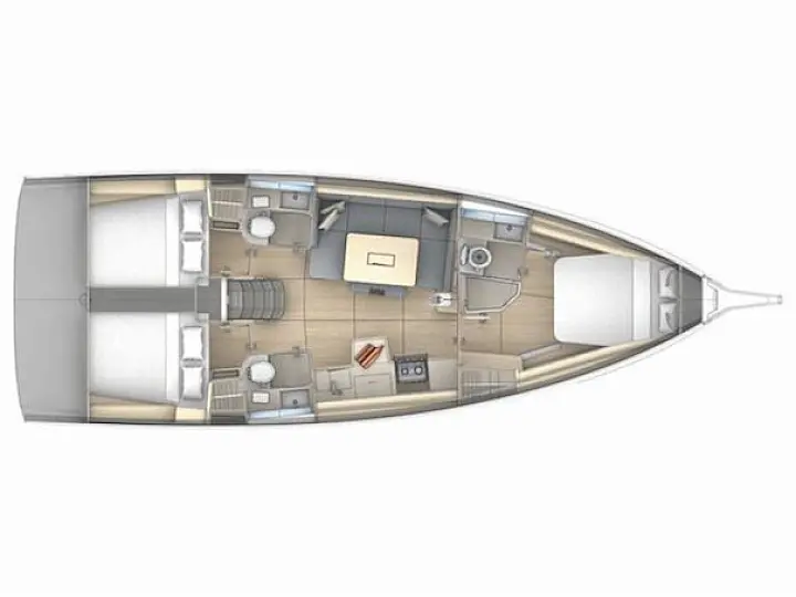 Electric flush WC, Bilge pump - Electric, Outside speakers, Bilge pump - mechanic, Outside shower, Swimming ladder, Kitchen utensils (Galley equipment, cutlery), Ventilators in all cabins, Self inflating life vest, Life raft, Teak deck in the cockpit, Bathing Platform, VHF Radio, Refrigerator, Cockpit cushions, Cockpit table, Hot water, Dinghy, Bed linen, Electric anchor windlass, Sprayhood, Solar panels, EPIRB, Radio-CD Player, Plug 220V, USB plugs in all cabins, Inverter 2000 Watt