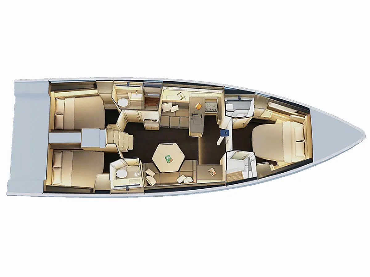 Autopilota, Busolla, GPS plotter, Tachimetro, Profondimetro, Carte nautiche, Stazione VHF, Radar, Anemometro, GPS plotter in pozzeto, Propulsore di prua