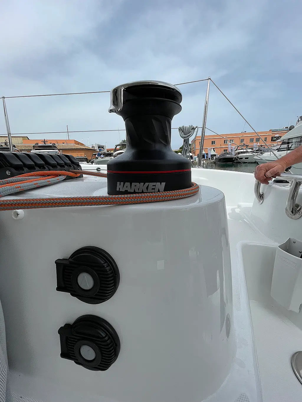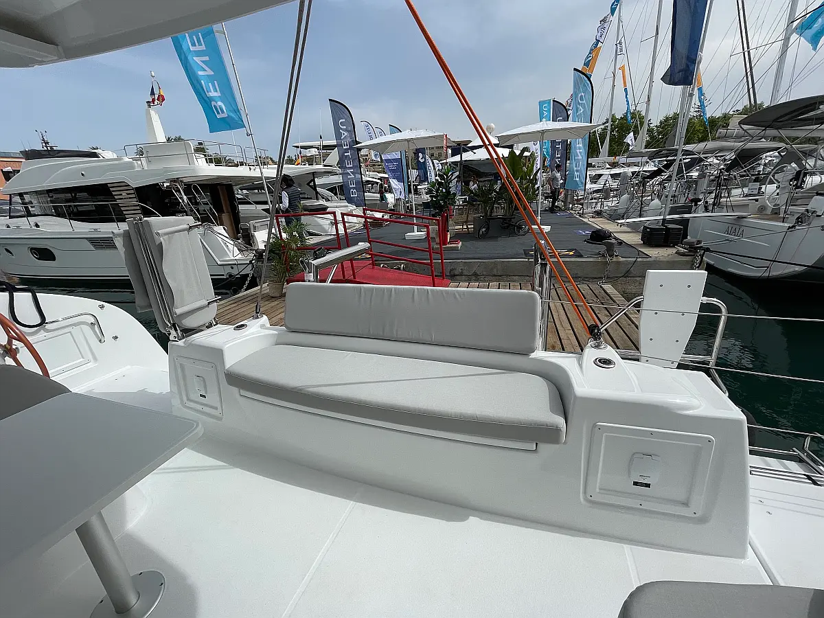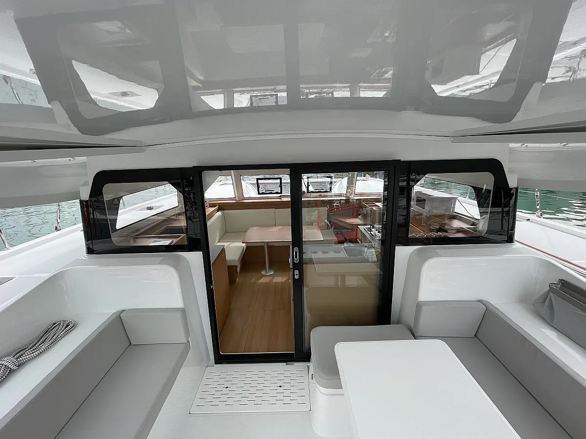Binoculars, Torch, Fenders (8), Charts, Pilotbook, Rubber, Divider, Tool box, Kitchen equipment, Bosuns chair, Winch handles, First aid, Inverter 220V (2kWt), Gas bottle (2), Dinghy, Shore power cable, Life jackets, Autopilot, Cockpit cushions, Wind station, Echo sounder, Cockpit shower, Lazy bag, Furling genoa, VHF, Compass, Fire extinguishers, Liferaft, Mooring lines, Outboard engine, Swimming ladder, Full batten mainsail, Fire extinguisher, Flares, GPS in cockpit (true)