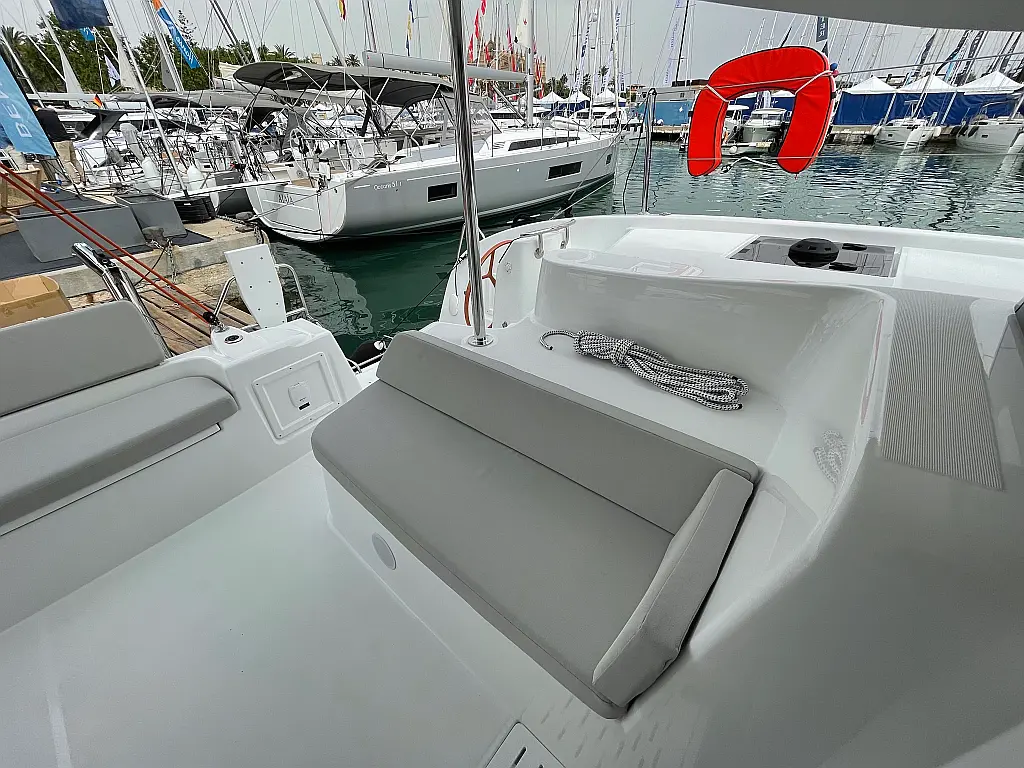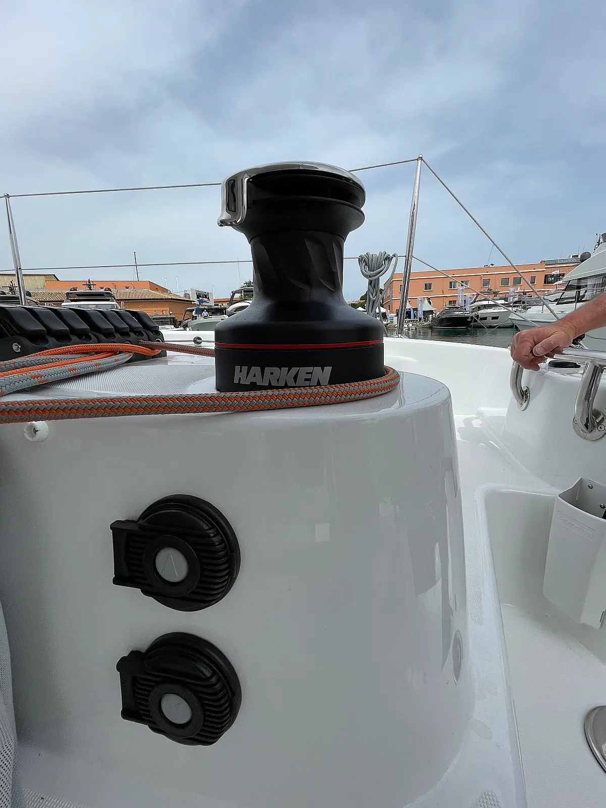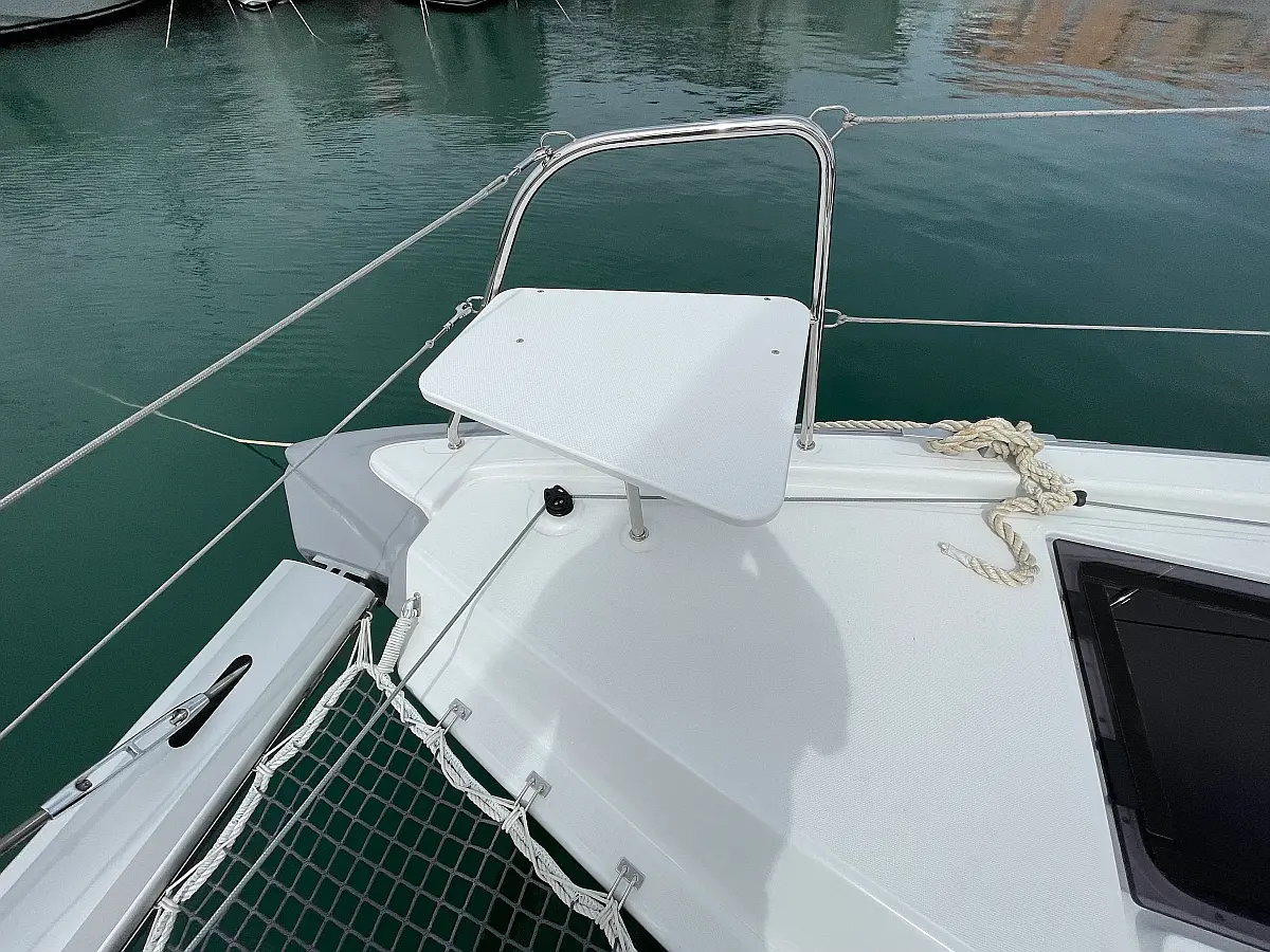 Binoculars, Torch, Fenders (8), Charts, Pencil (2), Rubber, Divider, Tool box, Kitchen equipment, Bosuns chair, Winch handles, First aid, Inverter 220V (2000kWt), Gas bottle (2), Dinghy, Shore power cable, Life jackets, Sprayhood, Autopilot, Cockpit cushions, Wind station, Echo sounder, Cockpit shower, Lazy bag, Furling genoa, VHF, EPIRB, Compass, Fire extinguishers, Liferaft, Mooring lines, Swimming ladder, Full batten mainsail, Fire extinguisher, Windlass+remote (1), Flares, GPS in cockpit (1)
