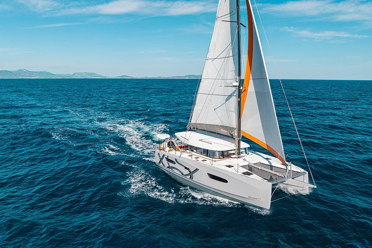 Code 0 Gear with furler and extended composit bowspirit, All electric winches, Black lacquered aluminum mast, Upgrade 12" displays, Pair of 3-blade folding propellers