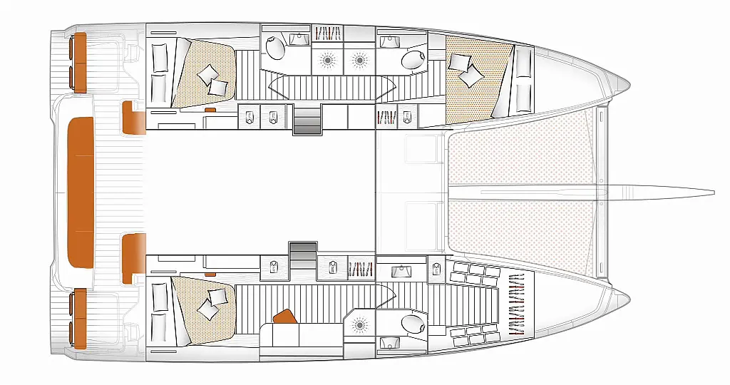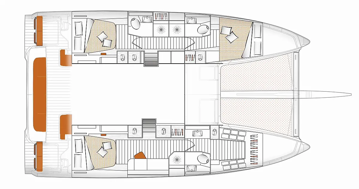 Teak Deck, Air Conditioning (Yes), Watermaker, Generator, Inverter, Electric Toilet, Underwater lights, Gangway, Indirect Lighting in cabins