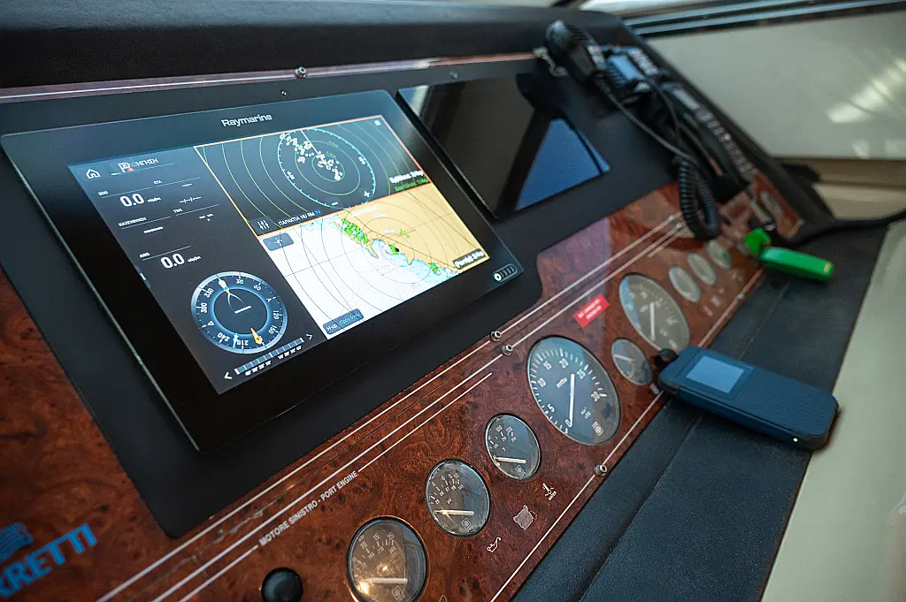 VHF, AIS, Binoculars, Chart Plotter, Electronic Sea Charts, GPS, Barometer, Autopilot, Electronic harbour charts, Cockpit control panel, QNC, Compass, Pilot book, Sea charts, Echo-Sounder, Joystick control, List of lights, Radar, Windex