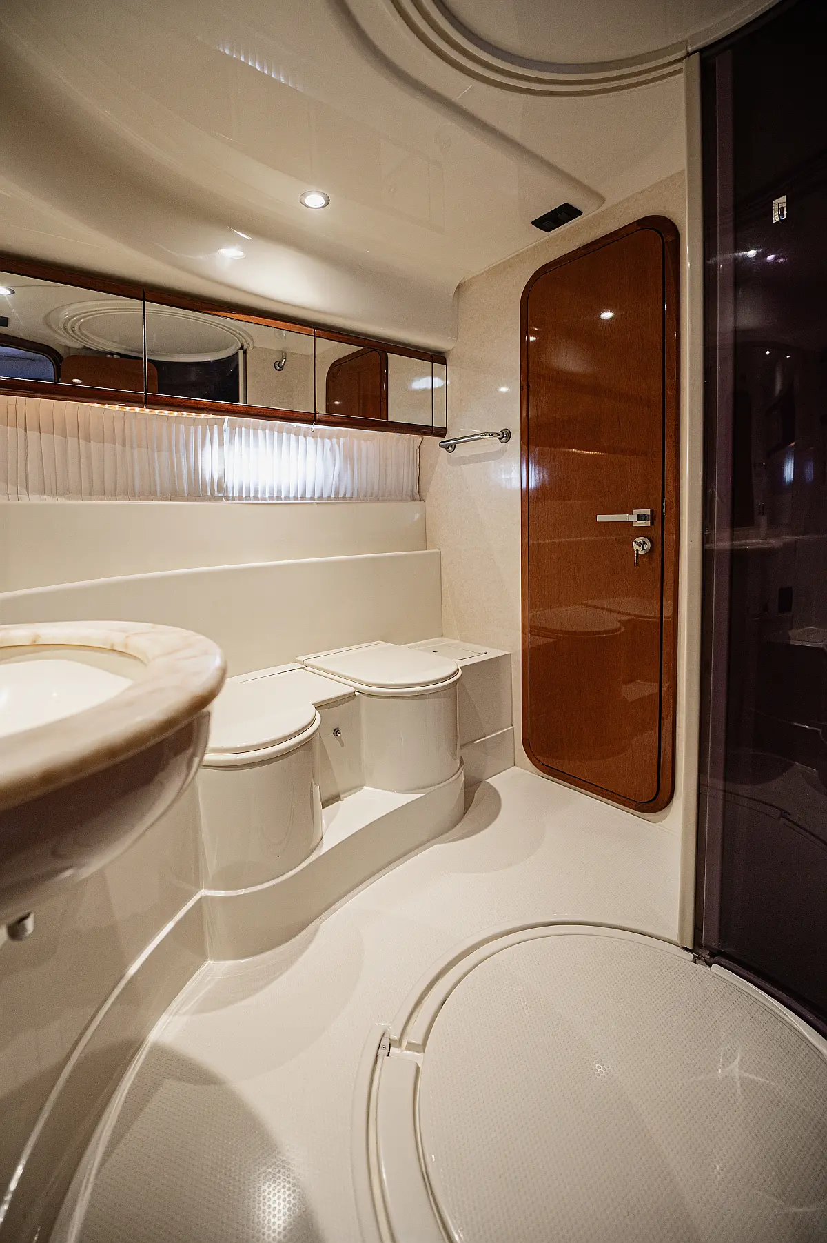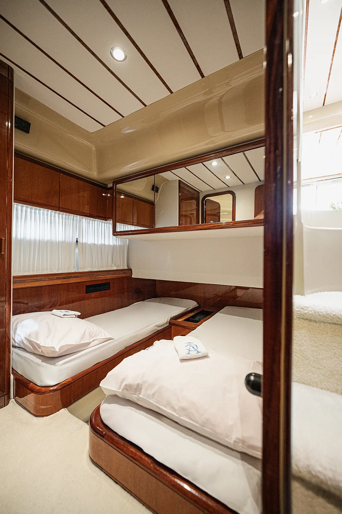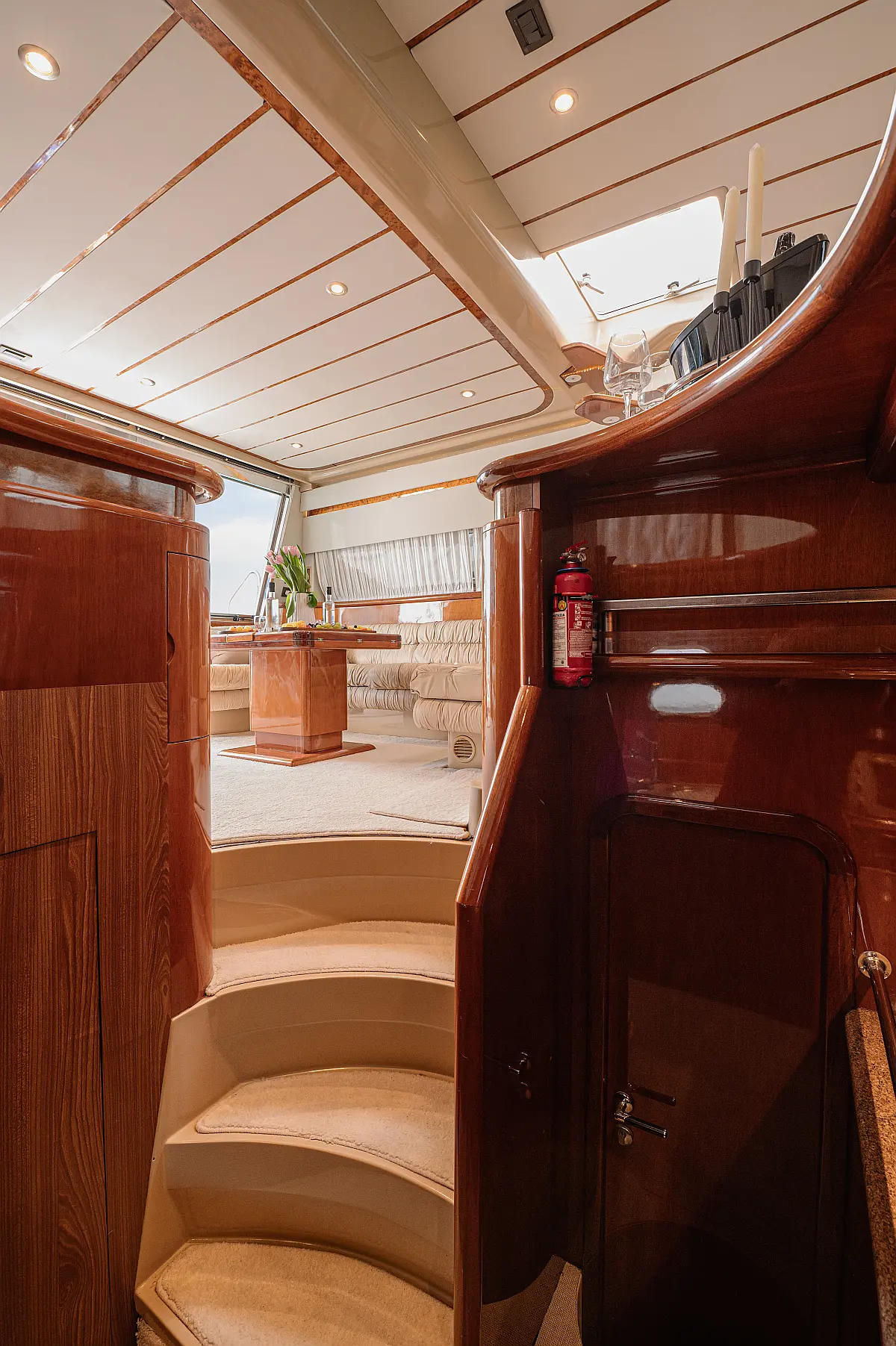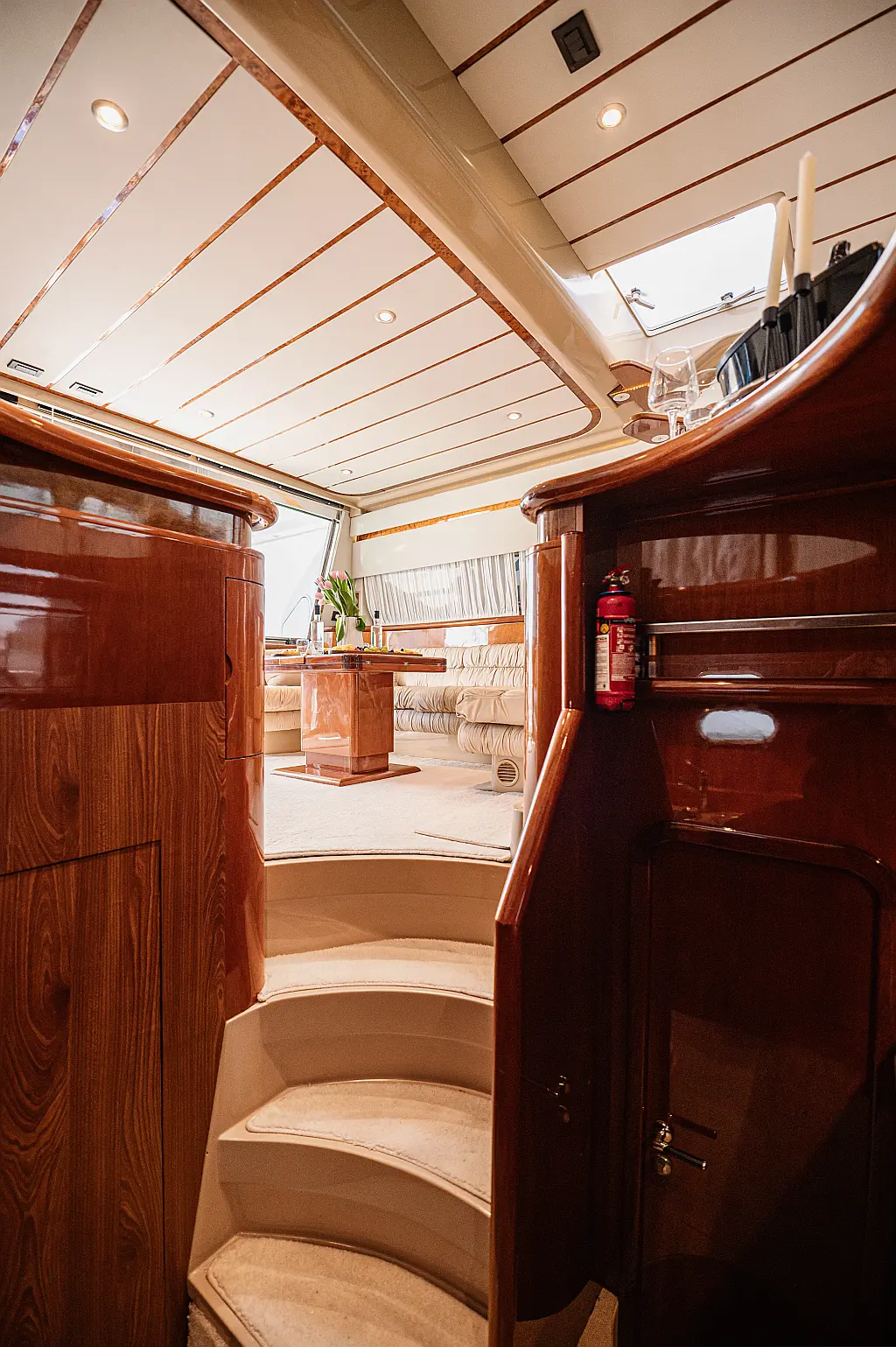 12V & USB outlet, Full audio Entertainment system, Speakers, Sundeck cushions, Underwater lights, Bilge pump, Cooler box, Bimini top-shade, Cockpit shower, Freezer, Air condition, Cook top, Cockpit cushions, Microwave, Refrigerator, First aid kit, Full safety equipment, Snorkeling equipment, 220 Volt Socket, Bow Thruster, Cockpit Speakers, Fridge on Flybridge, Cockpit table, Deck Shower, Diving mask, Electric Bilge pump, Electric toilet, Holding tank, Radio-MP3 Player, Shore cable, Hydraulic Platform, Outboard engine, Oven, Bed linen, Coffee machine, Dinghy, Gangway, Generator, Hot water, Dish Washer