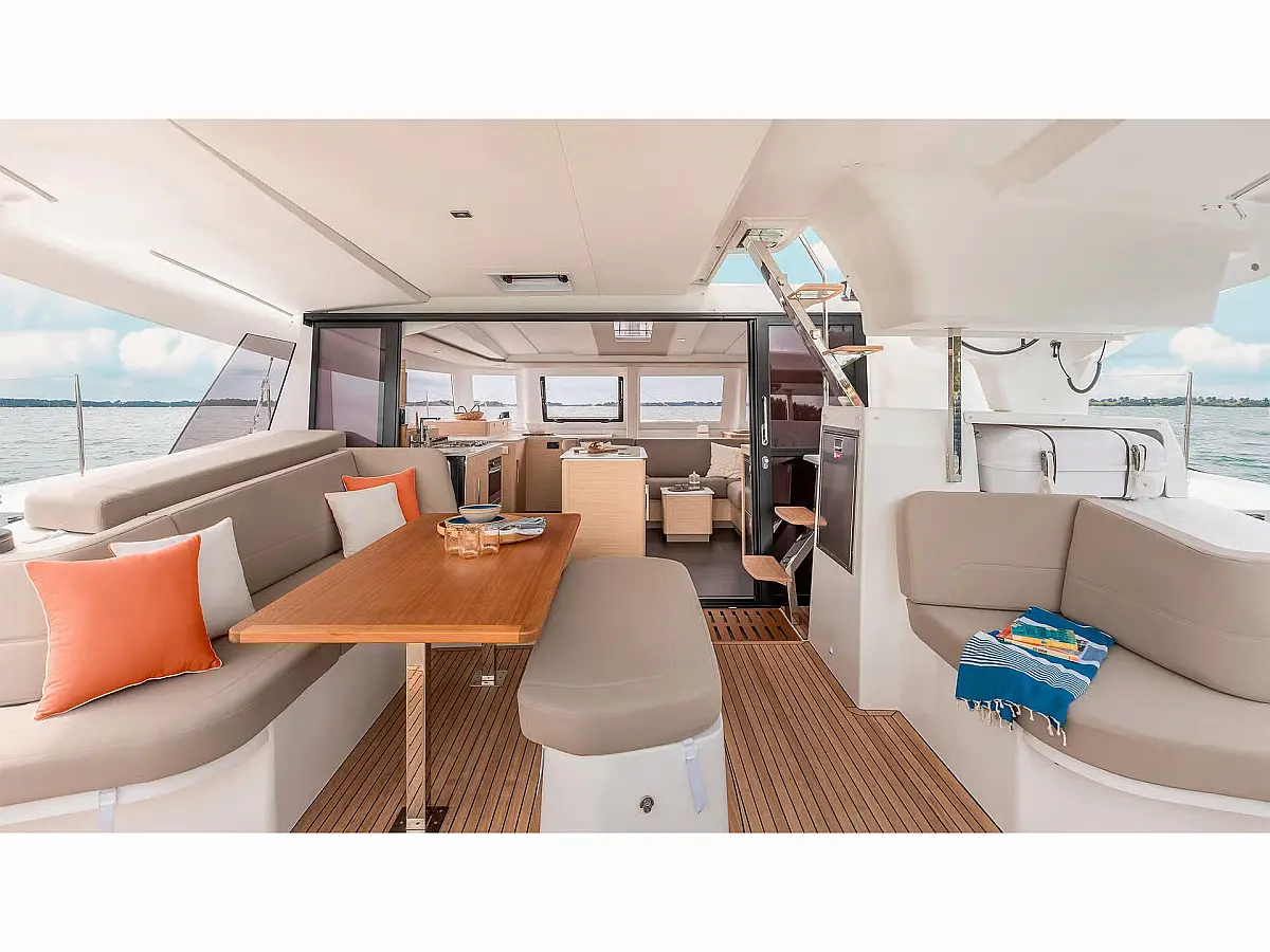 Cushions Cockpit Set, Anchor Windlass Control, Anchor Windlass Handle, Fenders, Flag Halyards, Emergency Tiller, Anchor Chain Main, Anchor Main, Floating Light, Horseshoe Lifebuoy, Radar reflector, Anchor windlass, Cockpit table, Solar Panels, Deck-Cockpit Shower, Swimming Ladder