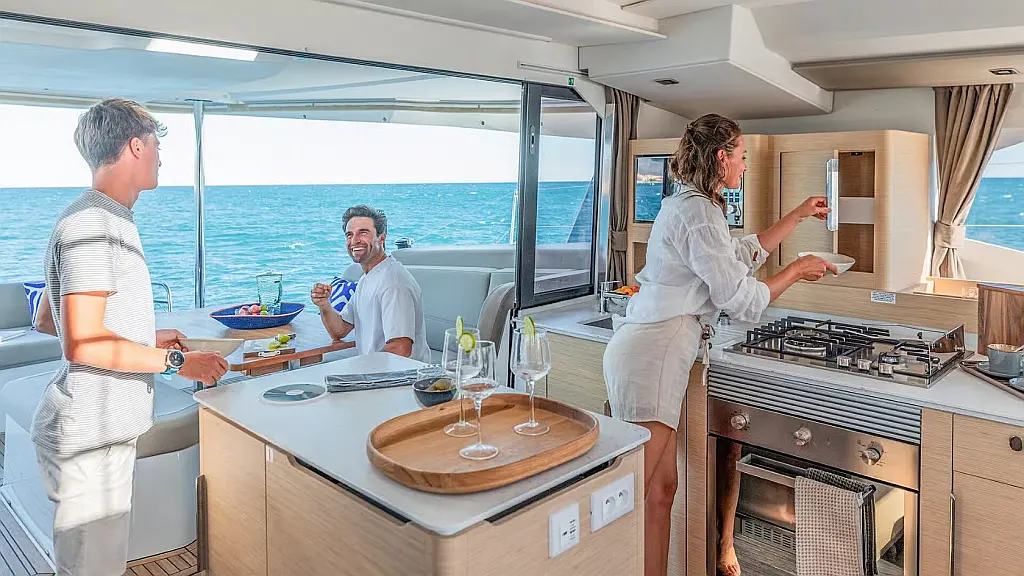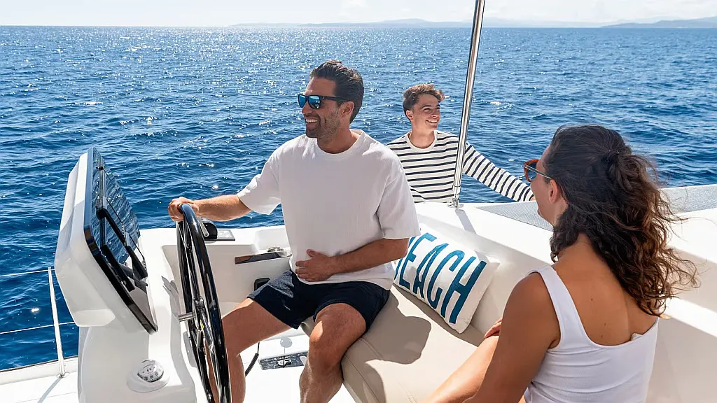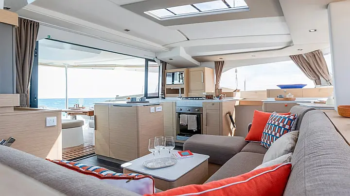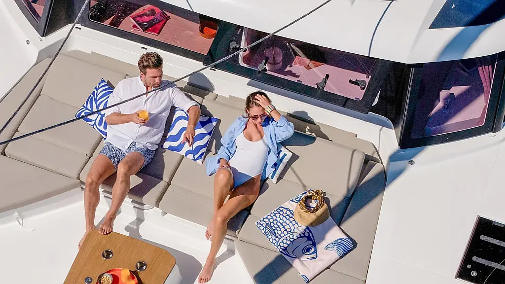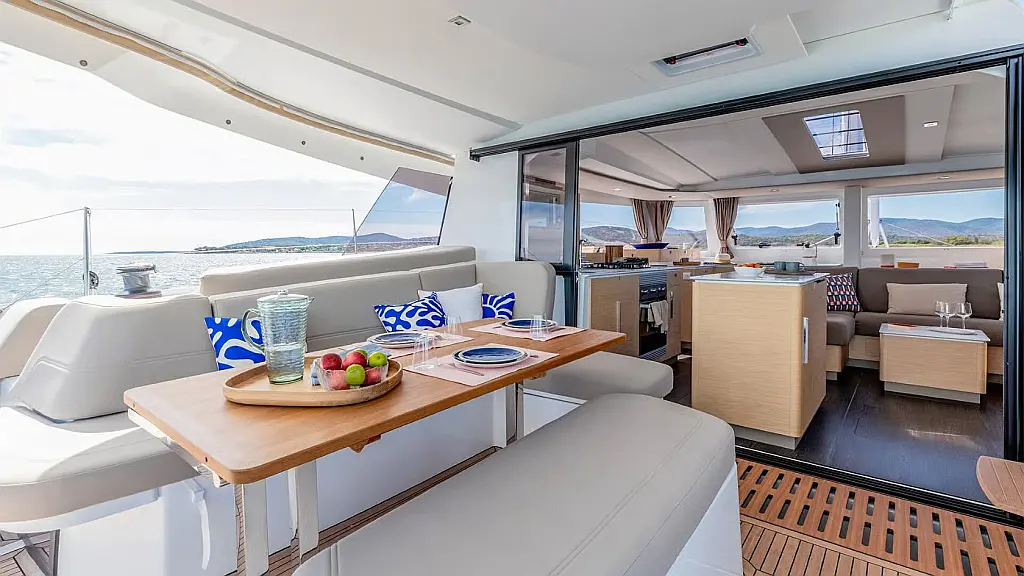 Bimini, Frigorifero, Barbecue in pozzetto, Tender, Teak in pozzetto , Macchina da caffè, Aria condizionata, Verricelli elettrici, Generatore, Riscaldamento, Pannelli solari, Cuscini in pozzetto