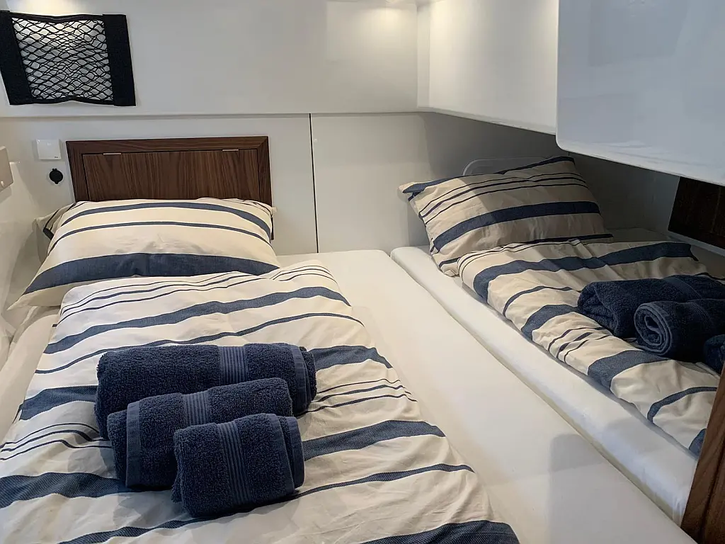 Riscaldamento, Ponte in Teak, Frigorifero, Macchina da caffè, Tender, Pannelli solari, Piattaforma da bagno, Cuscini in pozzetto, Wi-Fi e Internet, Altoparlanti in pozzetto