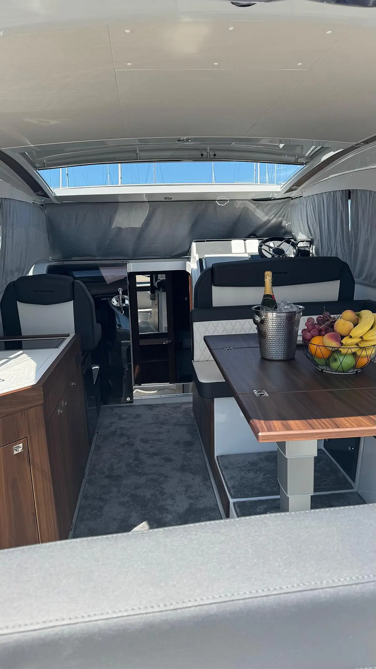 Fenders, Sliding sunroof, 3 parts, Sundeck cushion & cover on foredeck, Cockpit table, Cushion on cockpit table, LED lights to aft deck & steps, Teak on cockpit floor, Canopy, Transom shower, Swim platform and boarding ladder