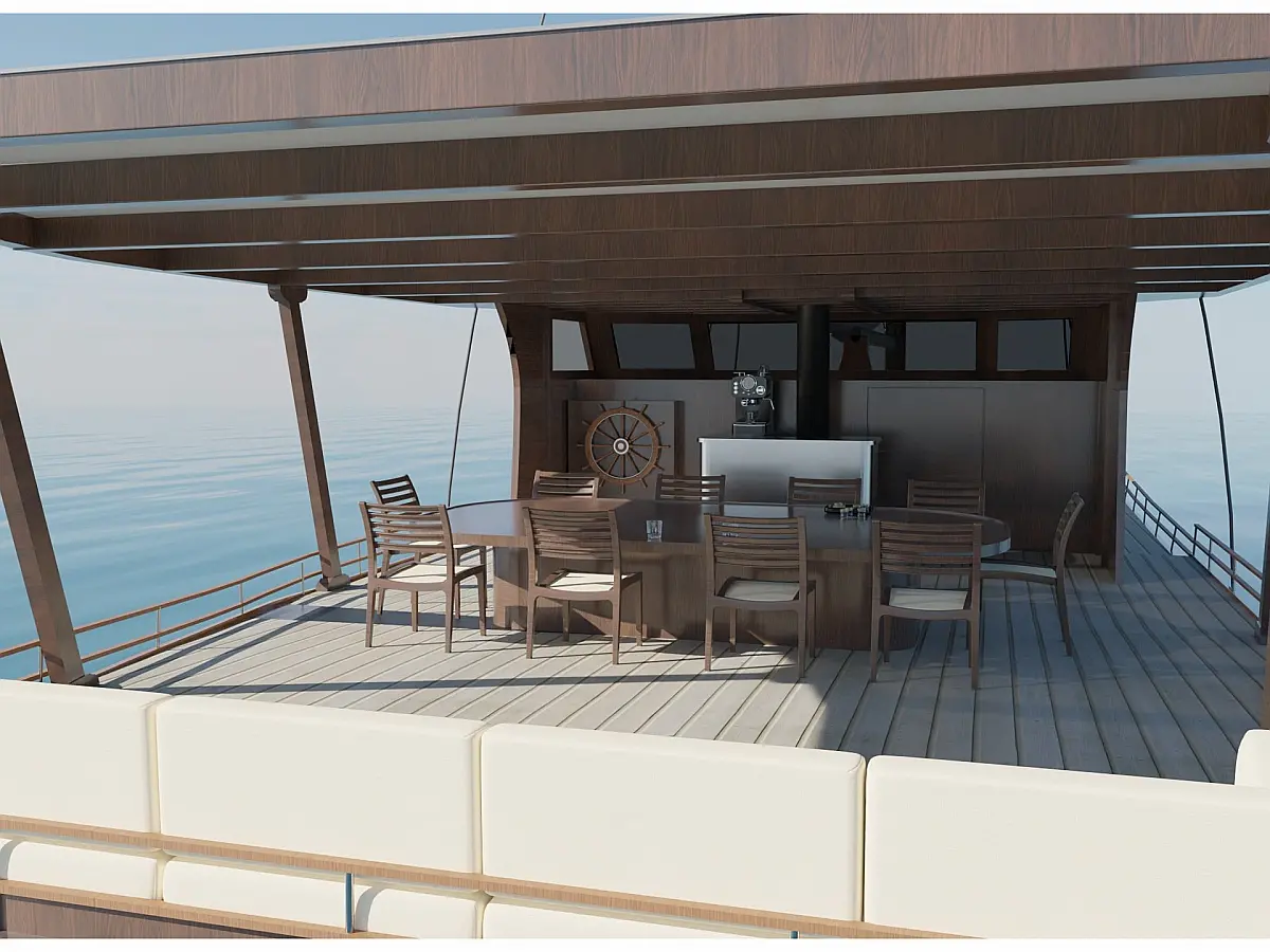 Sunbathing area, Deck shower, Cockpit table, Sunbathing cushions, Sun Tent (true)