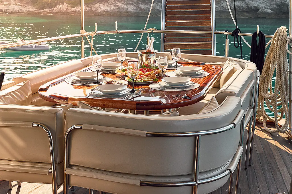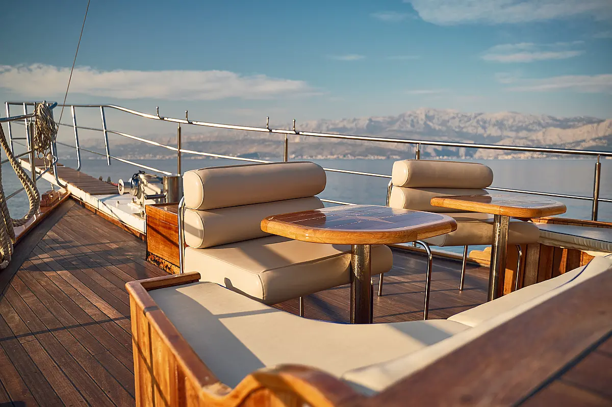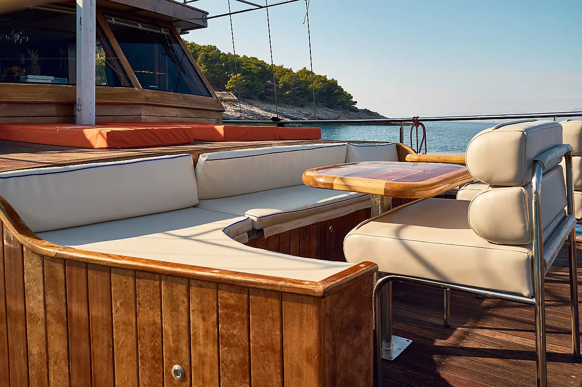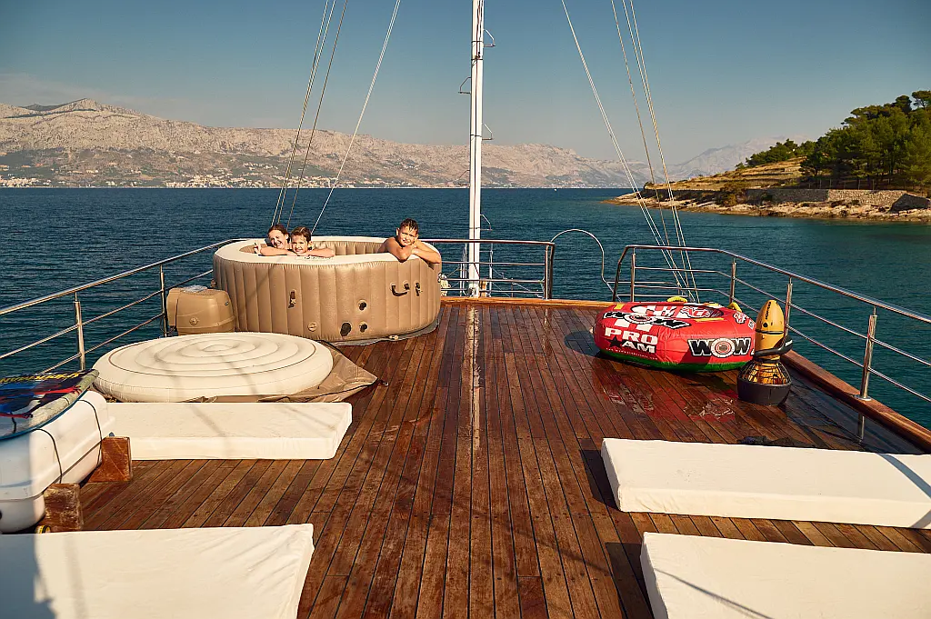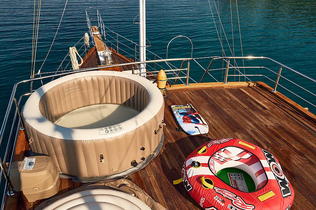 Deck shower, Deck jacuzzi, Sunbathing cushions, Sundeck beds