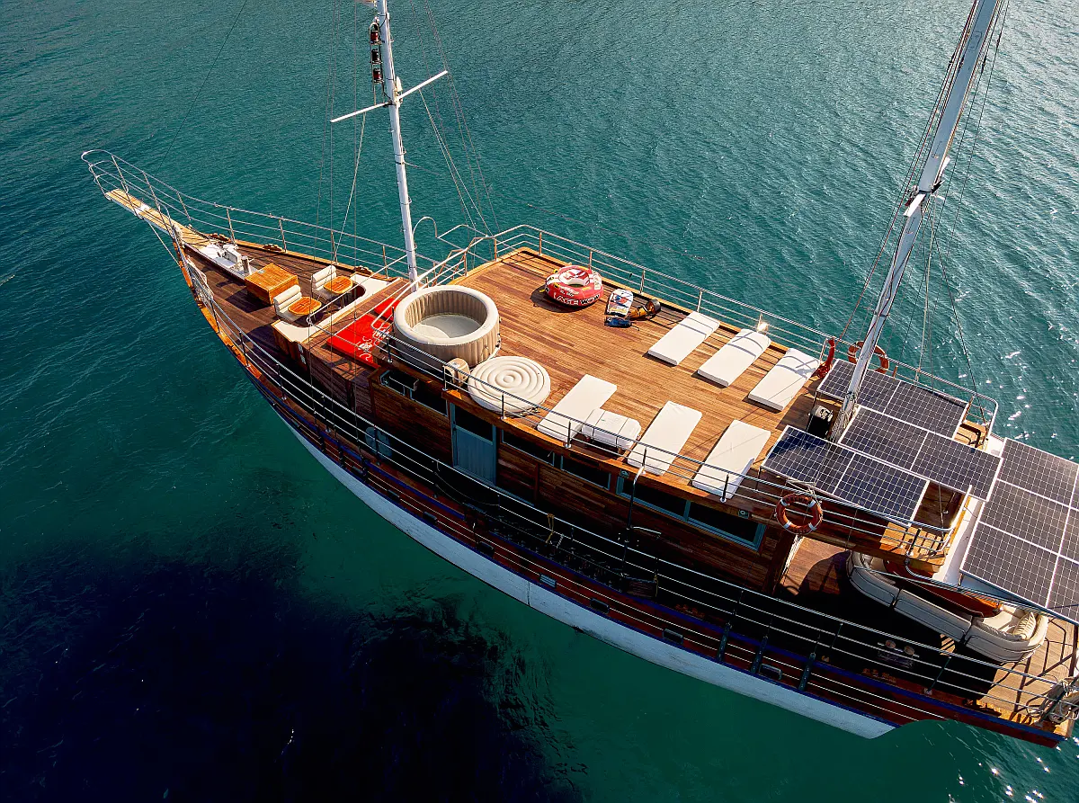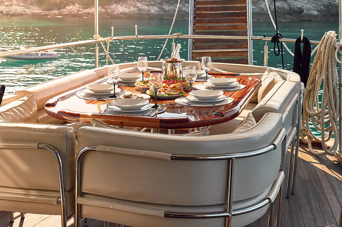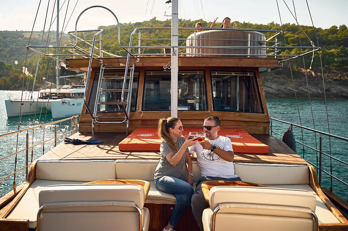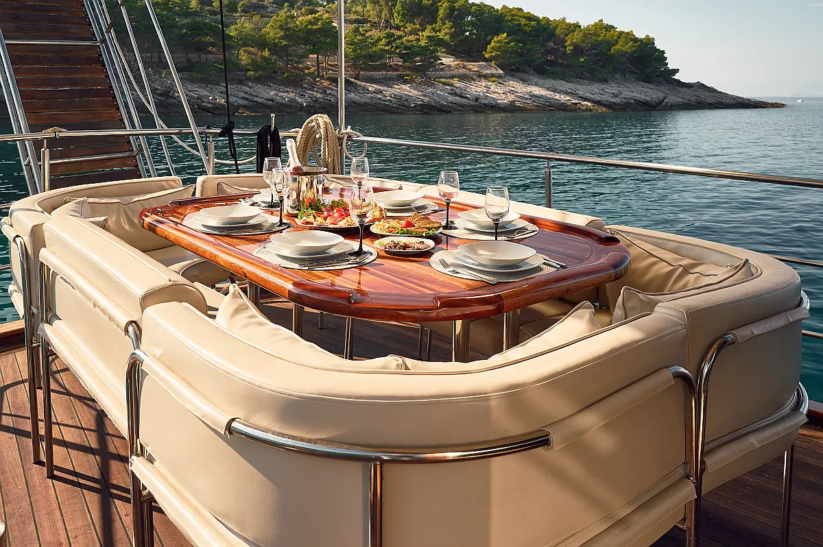 Deck shower, Deck jacuzzi, Sunbathing cushions, Sundeck beds