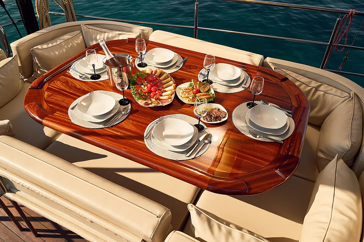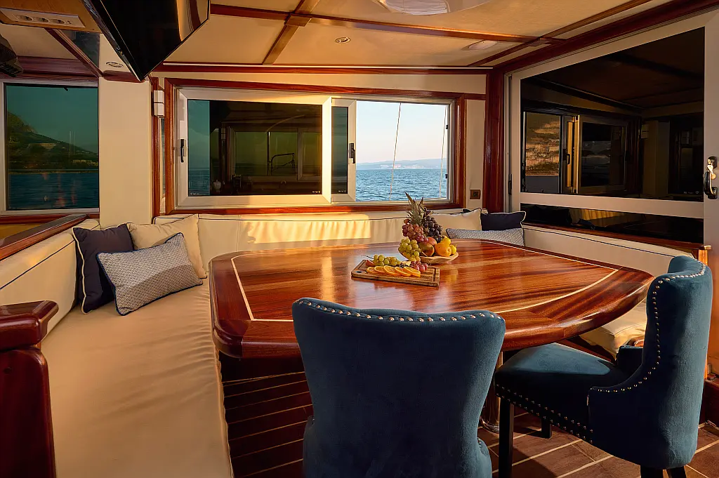 Bimini, Salon TV/DVD, Salon Stereo/Music, Sat TV, iPod/MP3 Hookups, Books / DVDs / Games, Sun Awning, Hammock, Wind Scoops, BBQ, Hair Dryers, Generator, Inverter