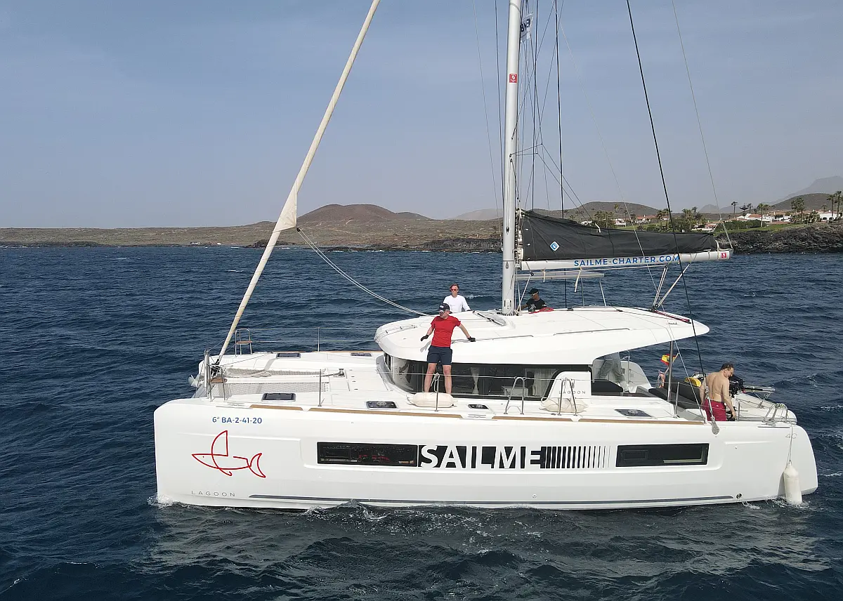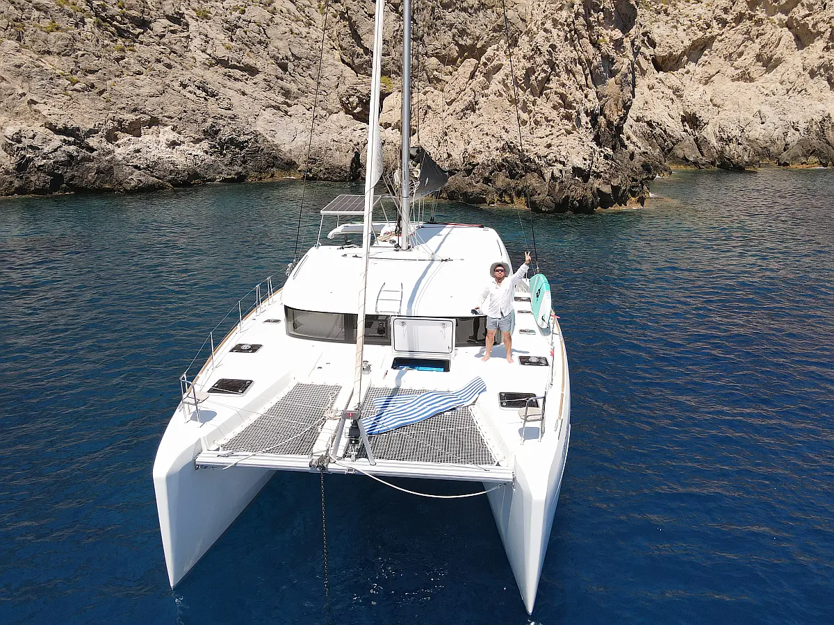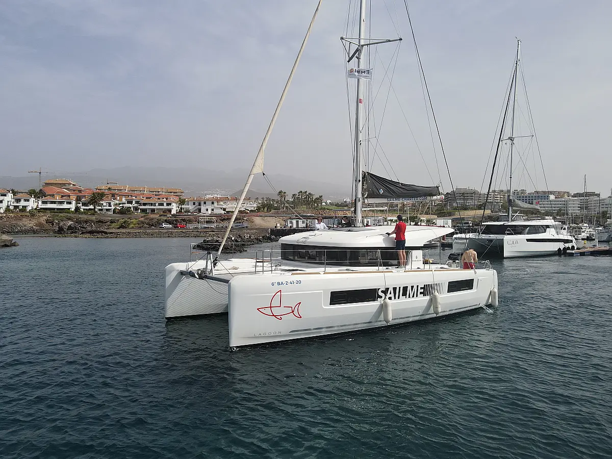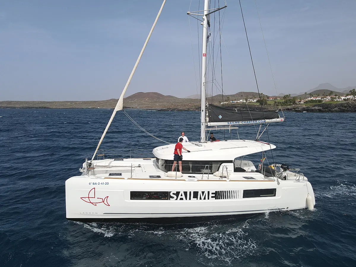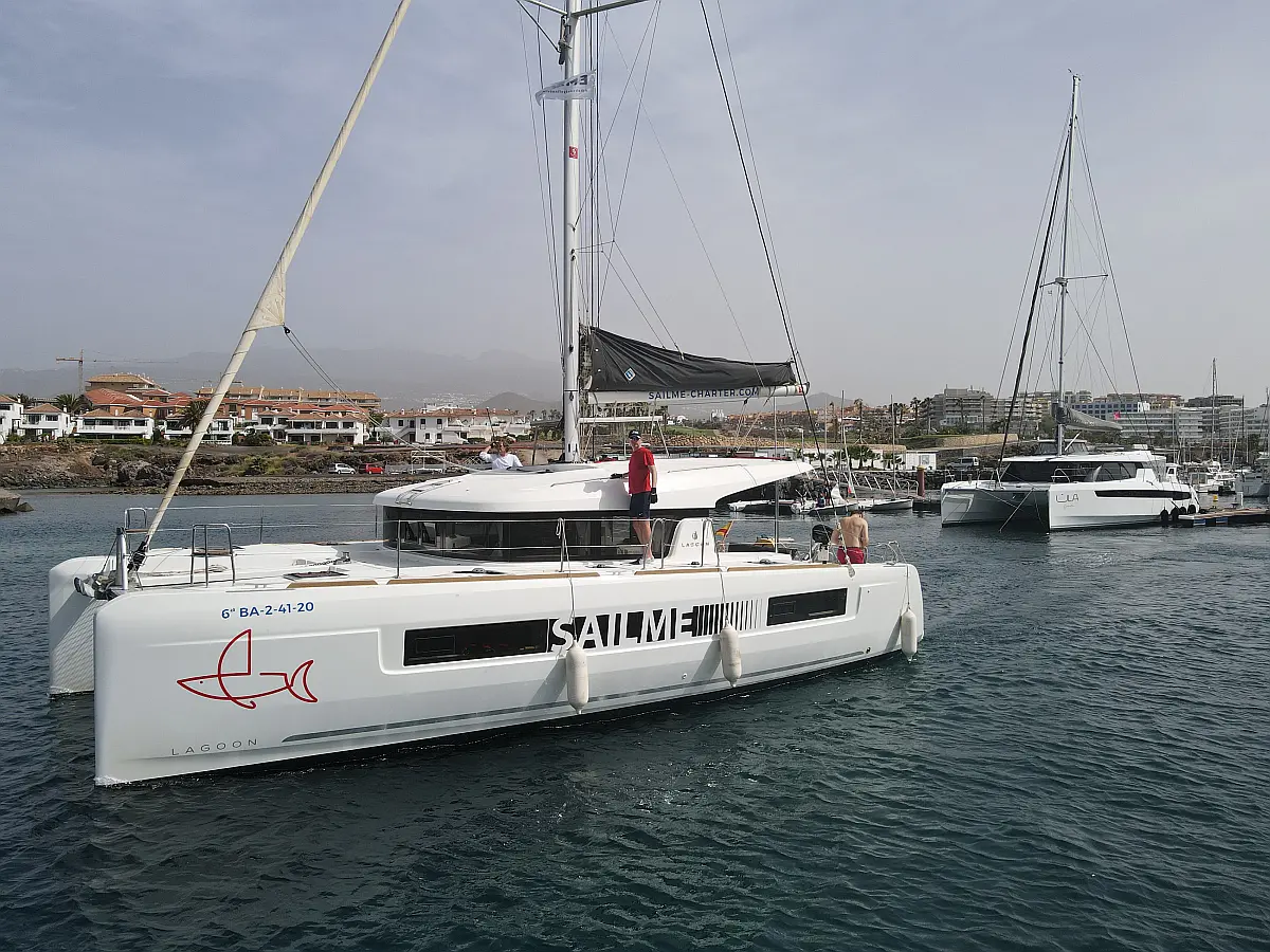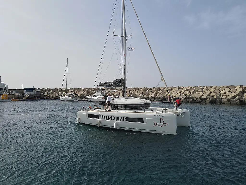 Binoculars, Torch, Charts, Pilotbook, Pencil (true), Rubber, Divider, Tool box, Kitchen equipment, Bosuns chair, Winch handles, First aid, Inverter 220V (true), Dinghy, Shore power cable, Life jackets, Sprayhood, Autopilot, Cockpit cushions, Wind station, Echo sounder, Cockpit shower, Lazy bag, Furling genoa, VHF, EPIRB, Compass, Fire extinguishers, Liferaft, Mooring lines, Outboard engine, Swimming ladder, Full batten mainsail, Fire extinguisher, Windlass+remote (true), Flares, Furling mainsail, Solar panels, GPS in cockpit (true)