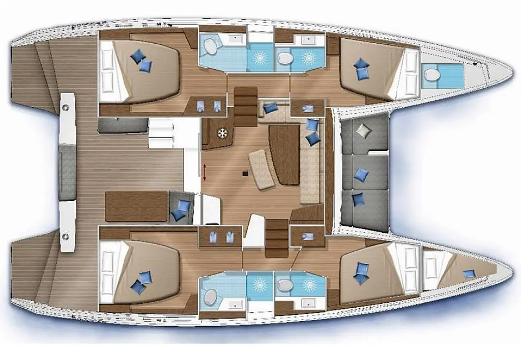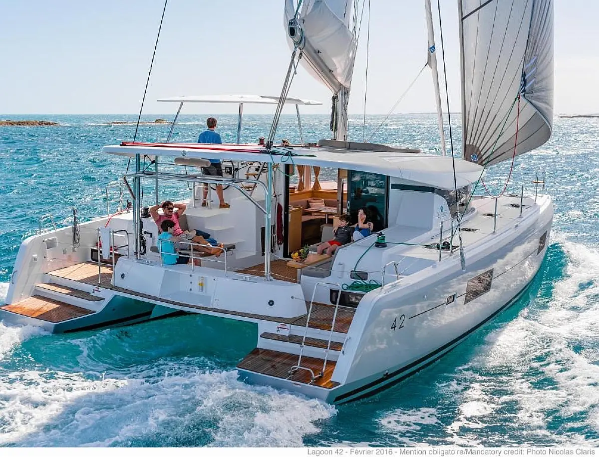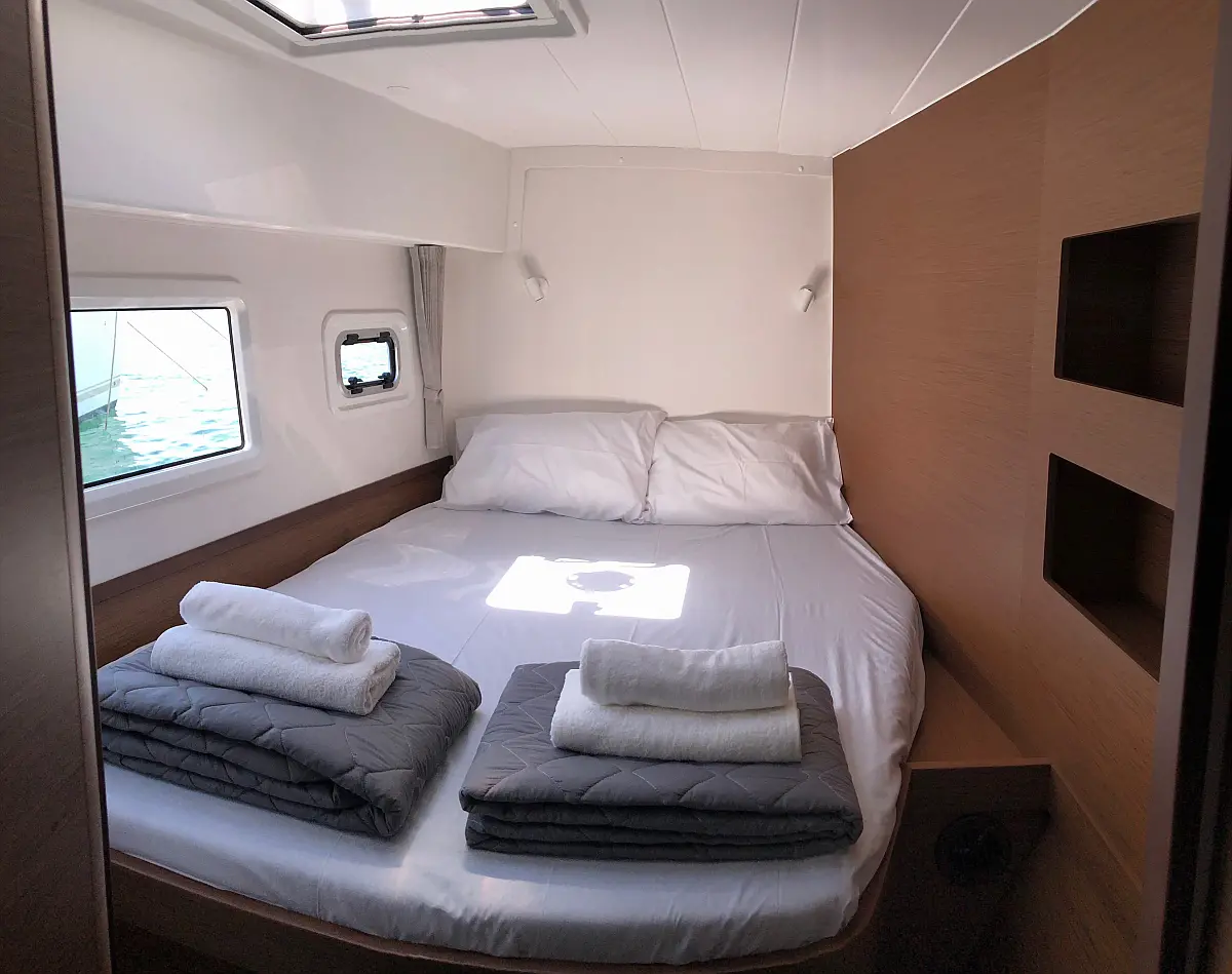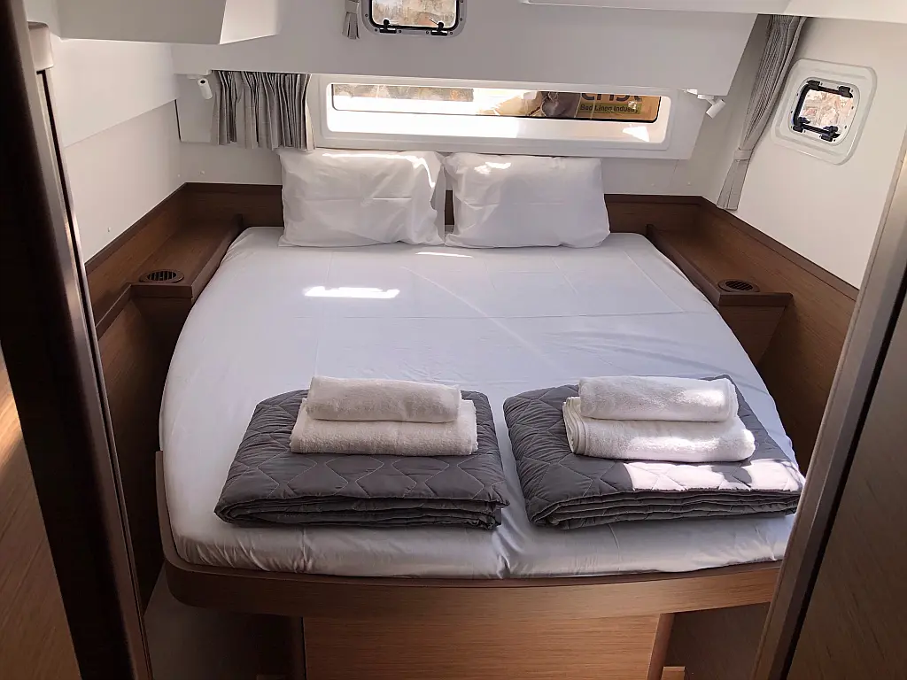 Full safety equipment, Inverter, Linen, Life belts, Life jackets, 220 volt sockets, Autopilot, Battery charger, Bimini, Electric toilet, Electric winches, Outboard Engine, Radio CD player (1), Wind instrument/Anemometer (1)