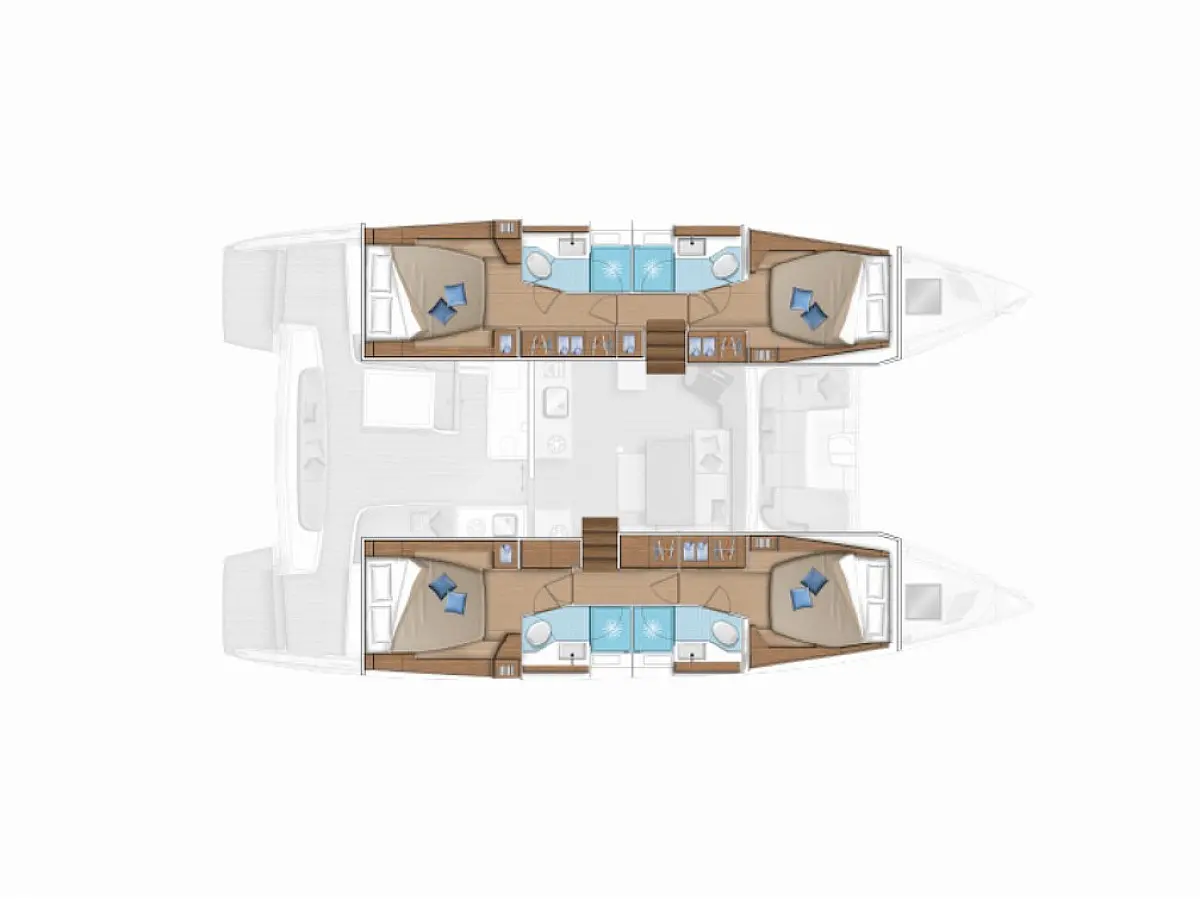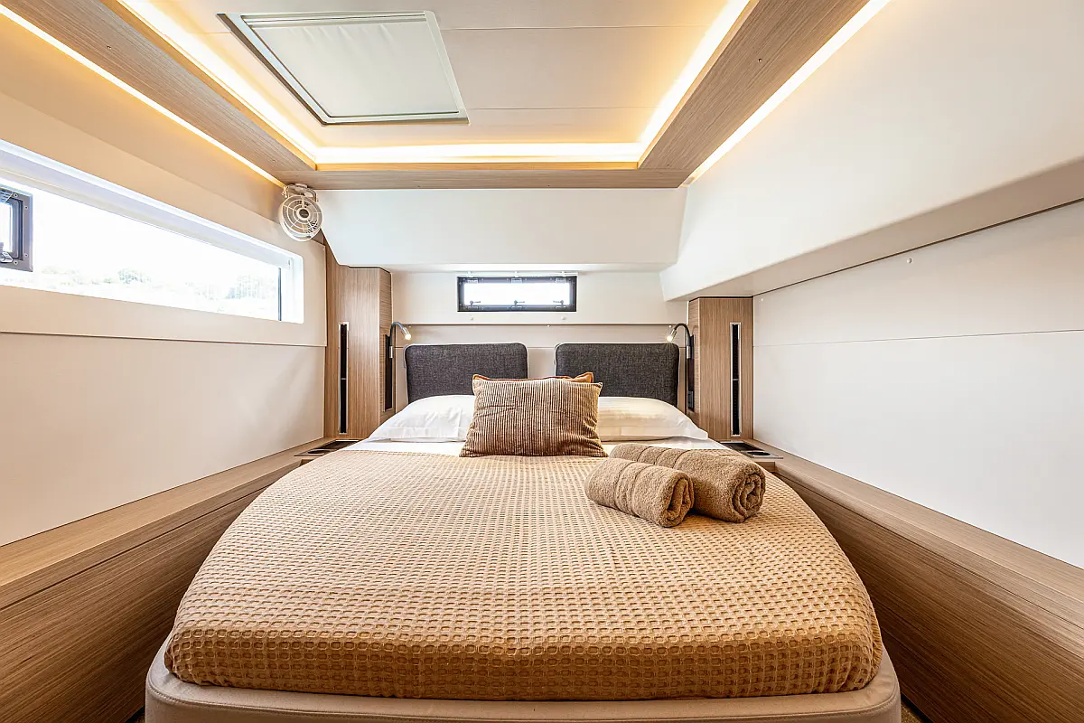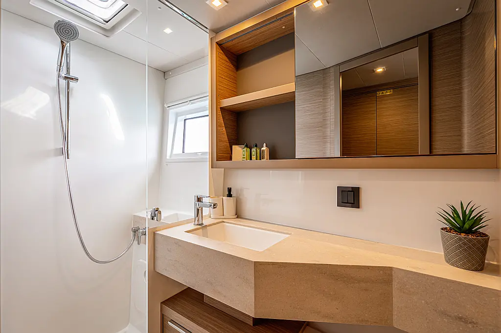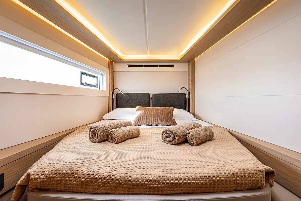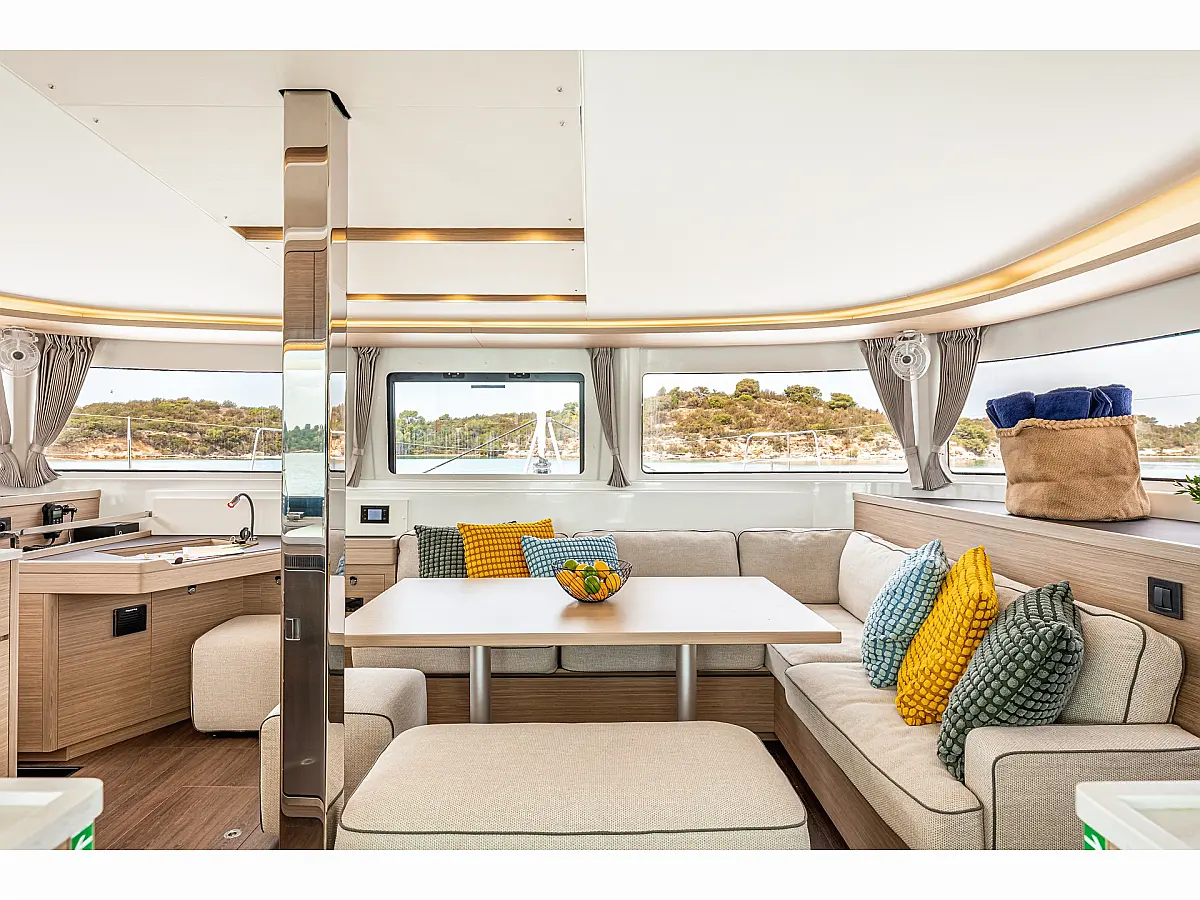 A/C, Teak Deck, Dinghy with outboard engine 10 hp, Bluetooth speakers/sound system connection, Smart TV, Generator, Fusion audio system, USB plugs, Espresso machine, Electric toilet, Hydraulic passarella, Hydraulic Platform (true), Inverter, Watermaker