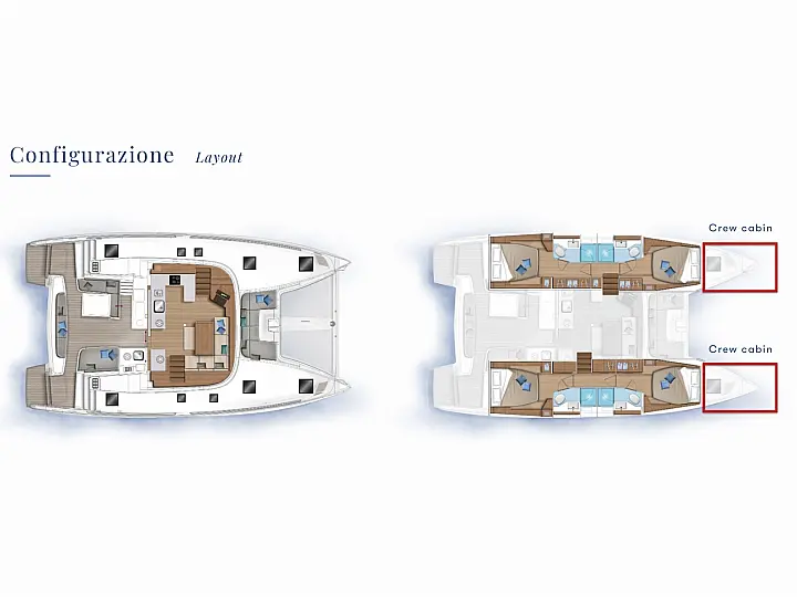 Tender, Motore fuoribordo, Cuscini in pozzetto, Frigorifero, Aria condizionata, Inverter, Dissalatore, Flybridge, Macchina da caffè, Generatore, WC elettrico