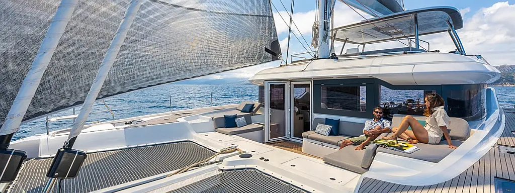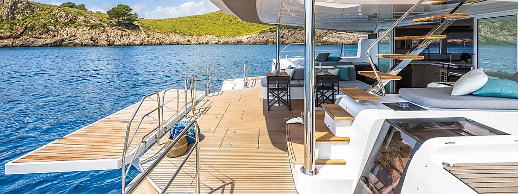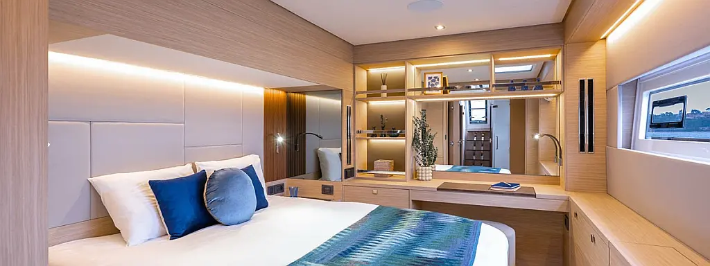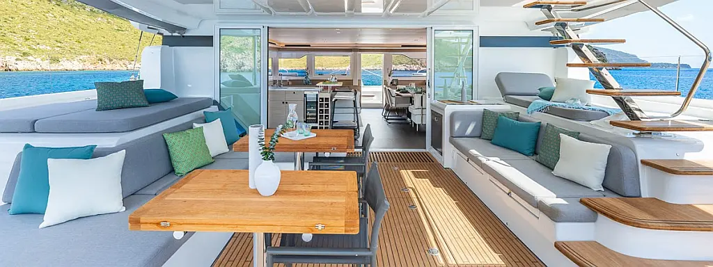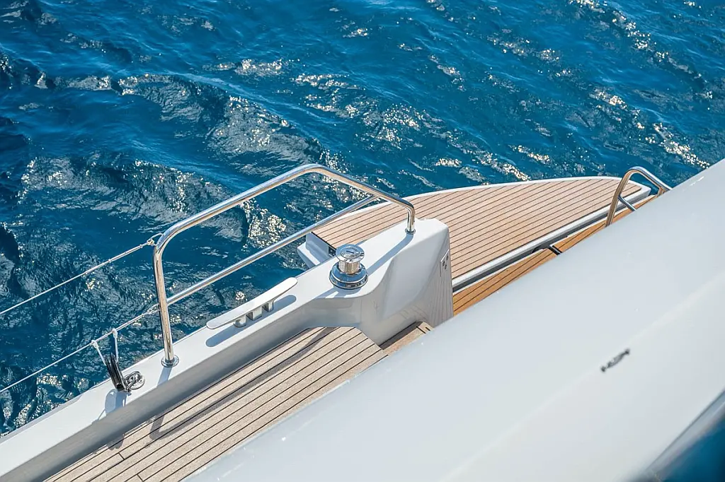 Frigo in pozzetto, Tenderlift, Bagni elettrici (5), A/C, Pannelli solari, Dissalatore, Lavastoviglie, SUP, Passerella Idraulica, Chart plotter in pozzetto, Set snorkeling (10), Flybridge, WC in front peak cabins