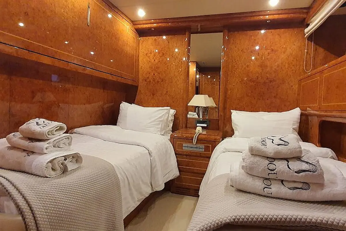 Air condition, Autopilot, Bathing platform, BBQ/ Grill, Bow thruster, Cooker/ Stove, Dinghy, Dishwasher, Fishing set, Freezer, Generator, Heater, Ice maker, Inverter, LCD TV, Nespresso Coffee machine, Outside deck speakers, Outside shower, Oven, Pillows and blankets, Radar, Refrigerator, Shower, Sink, Snorkel sets, Solar panels, Towels, Washing machine, Watermaker