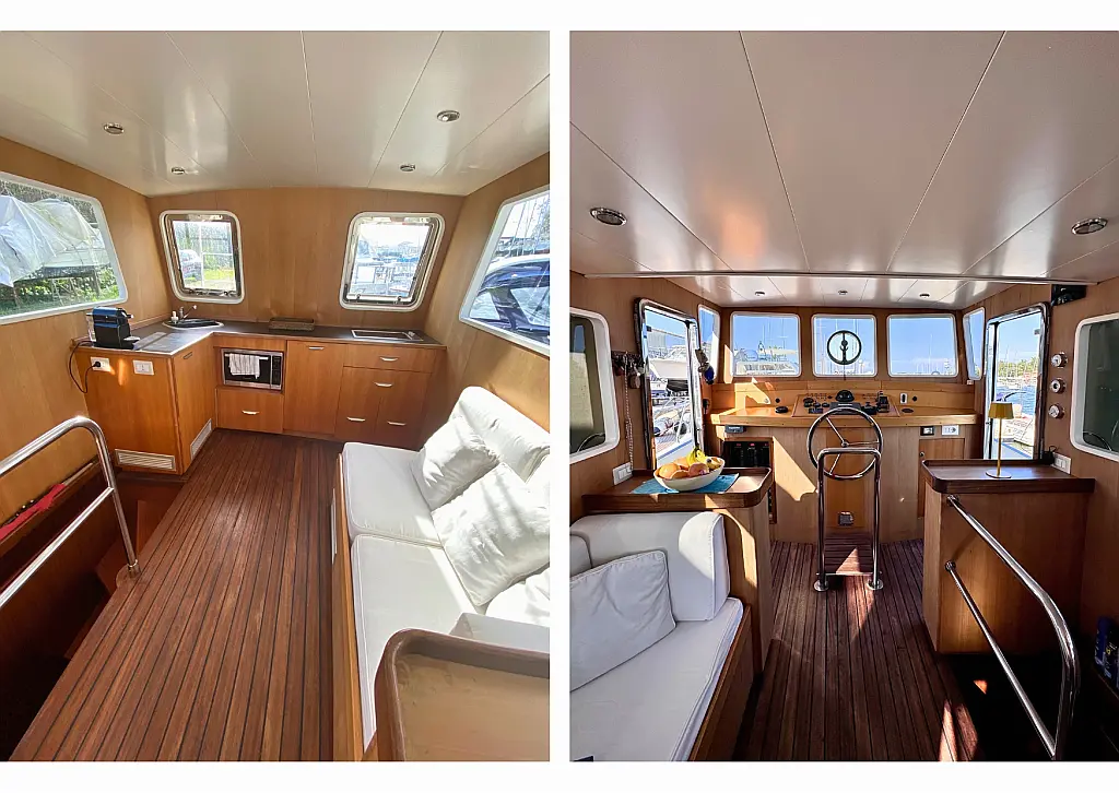 Bimini, Cockpit cushions, Electric toilets (2), Air condition, External lights, Speakers, Sun cushions, Black water tank, Dishwasher, Microwave, Nespresso machine, Induction plates, Generator, Tender (4 m)