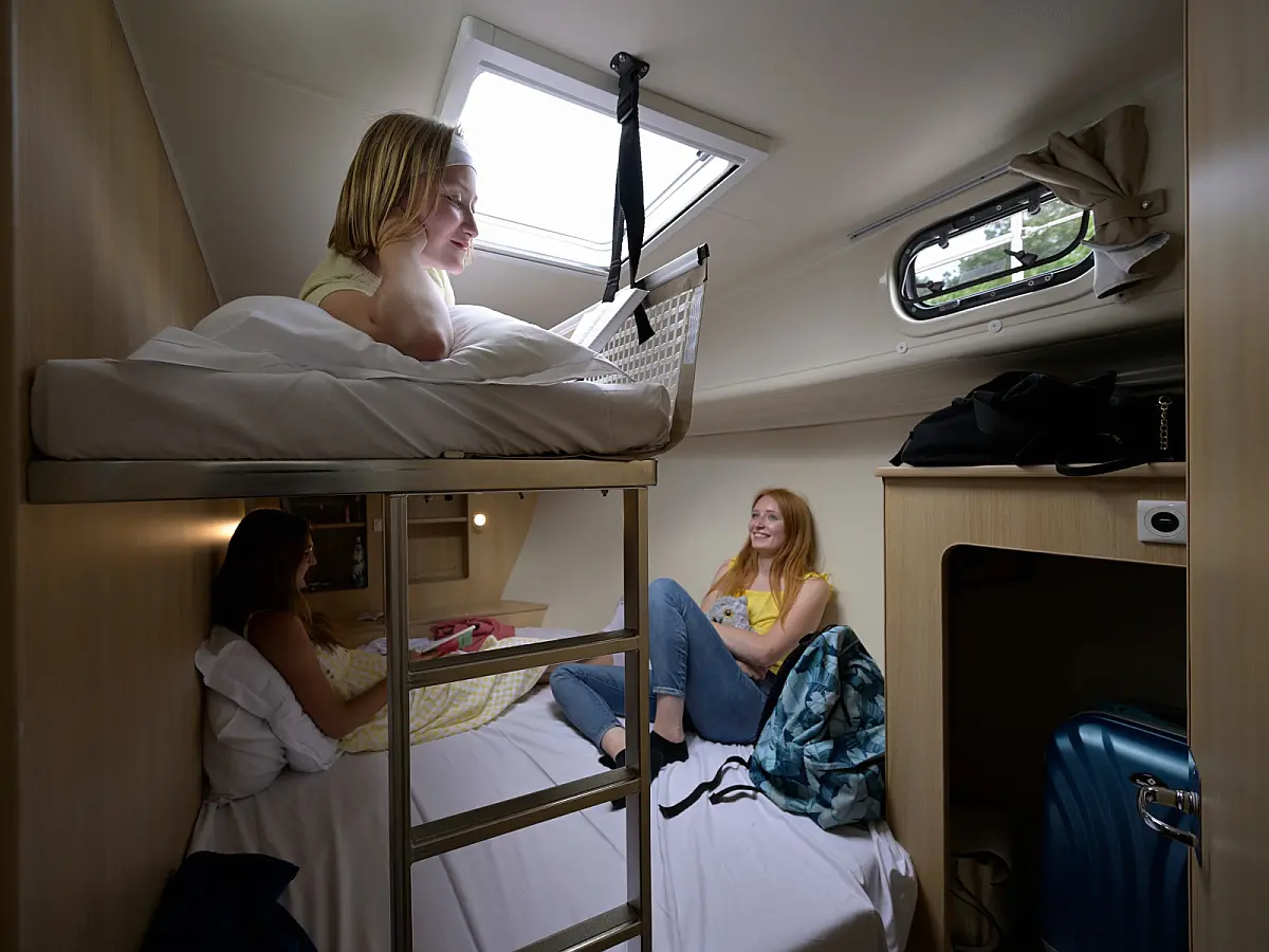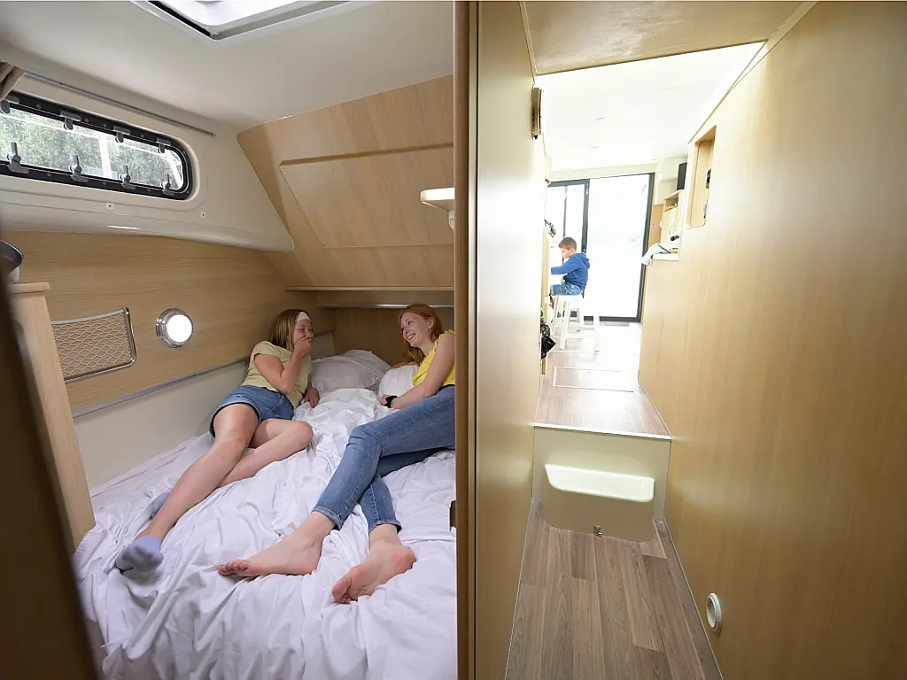 Towels, Heating, Hot water, Kitchen equipment (cookware, utensils...), Kettle, French-press coffee pot, Lifebelt, Life jackets, Fire extinguishers, First aid kit, Boat hook, Flybridge, TV, Easy access, Bow thruster, Stern thrusters, Microwave, Senseo coffee maker, Reinforced insulation, BBQ