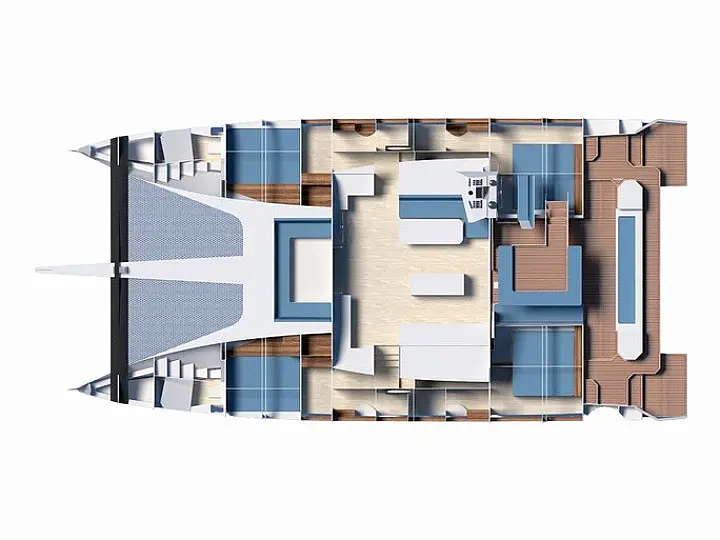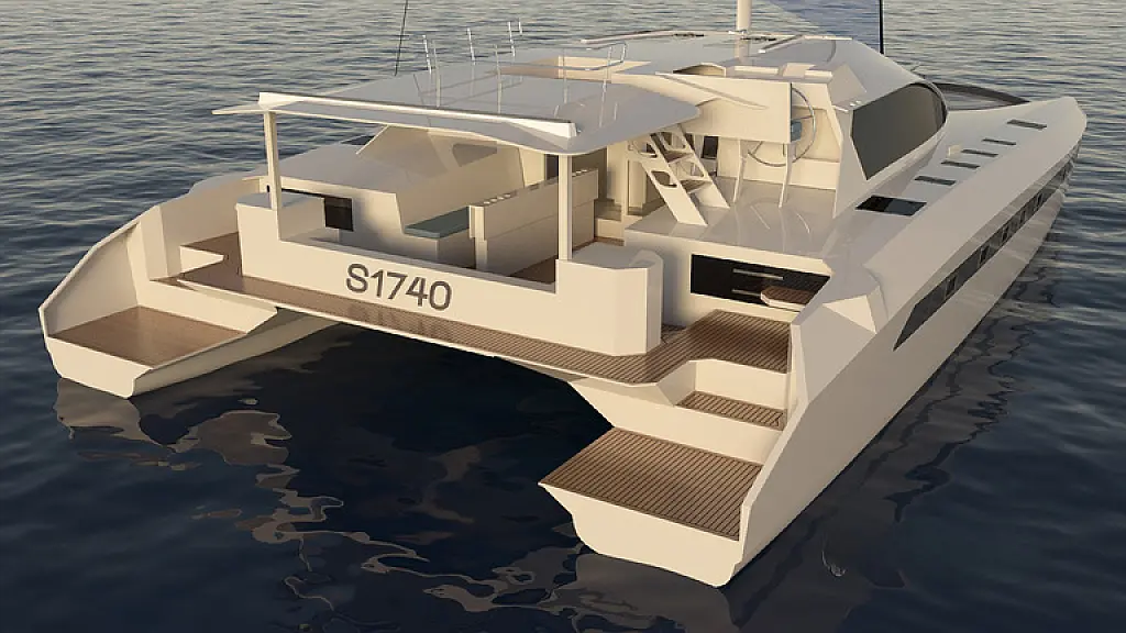 Air conditioning, Inverter, Solar panel, BBQ, Carbon rudder, Carbon sails, Carbon daggerboards, Cruising speed is 15 knots