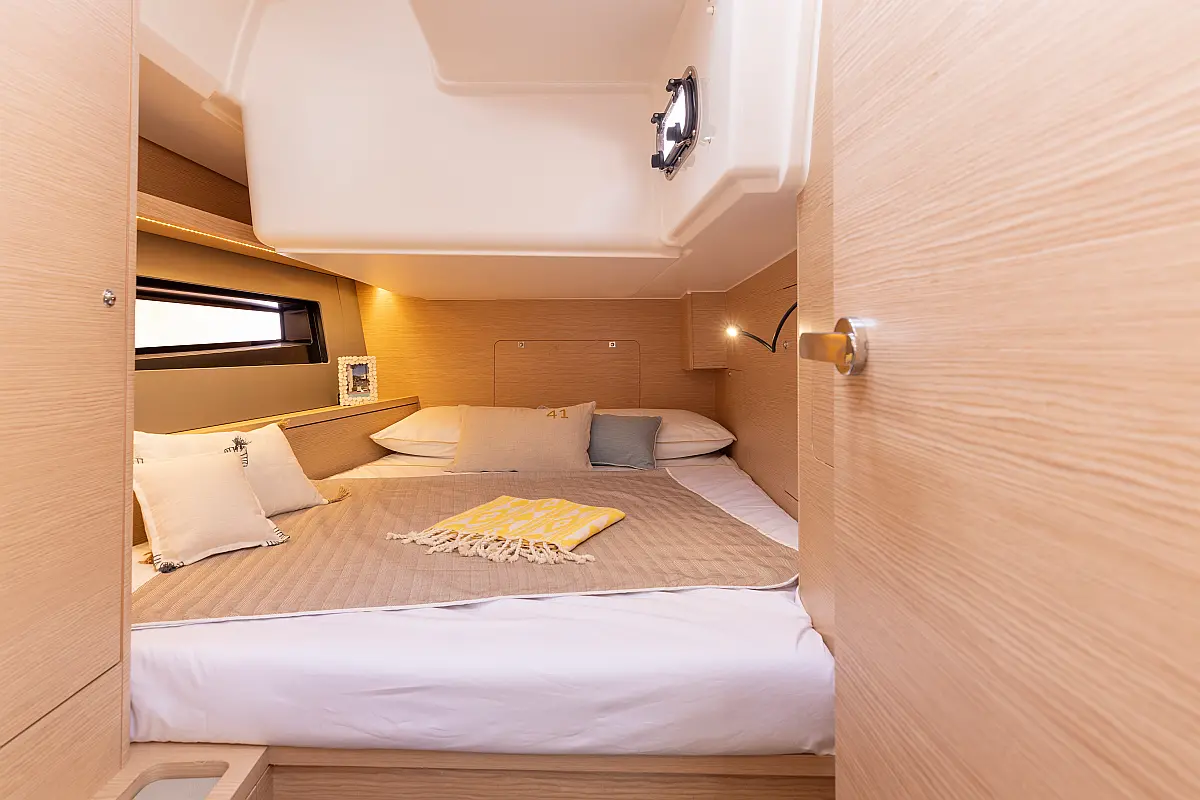 Bathing ladder, Gas bottles (Gas included), Electric windlass, Full batten mail sail, Lazy jack, 2 Steering wheels, Furling genoa, Lazy bag