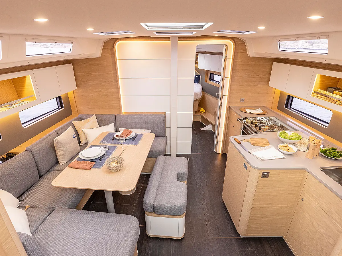 Bathing ladder, Gas bottles (Gas included), Electric windlass, Full batten mail sail, Lazy jack, 2 Steering wheels, Furling genoa, Lazy bag