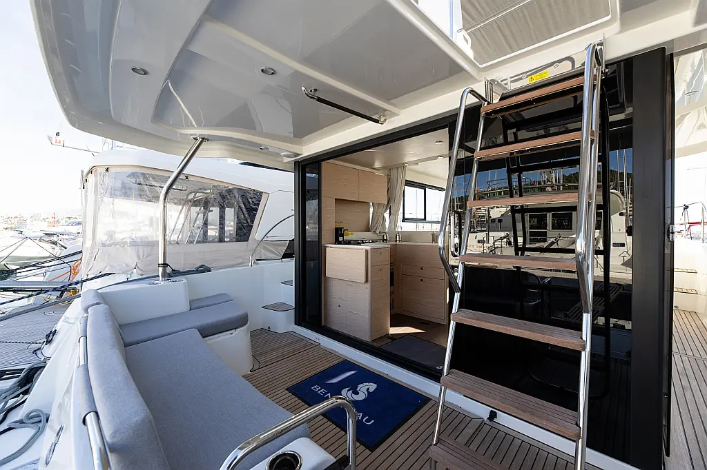 12V cockpit socket, Cup holders, Deck washing pump, Bimini-Top, Flybridge fridge (40 L), Led navigation lights, Mooring anchoring kit, Slid wood aft swim deck, Solid wood cockpit floor and starboard catwalk, Sunbathing cushions